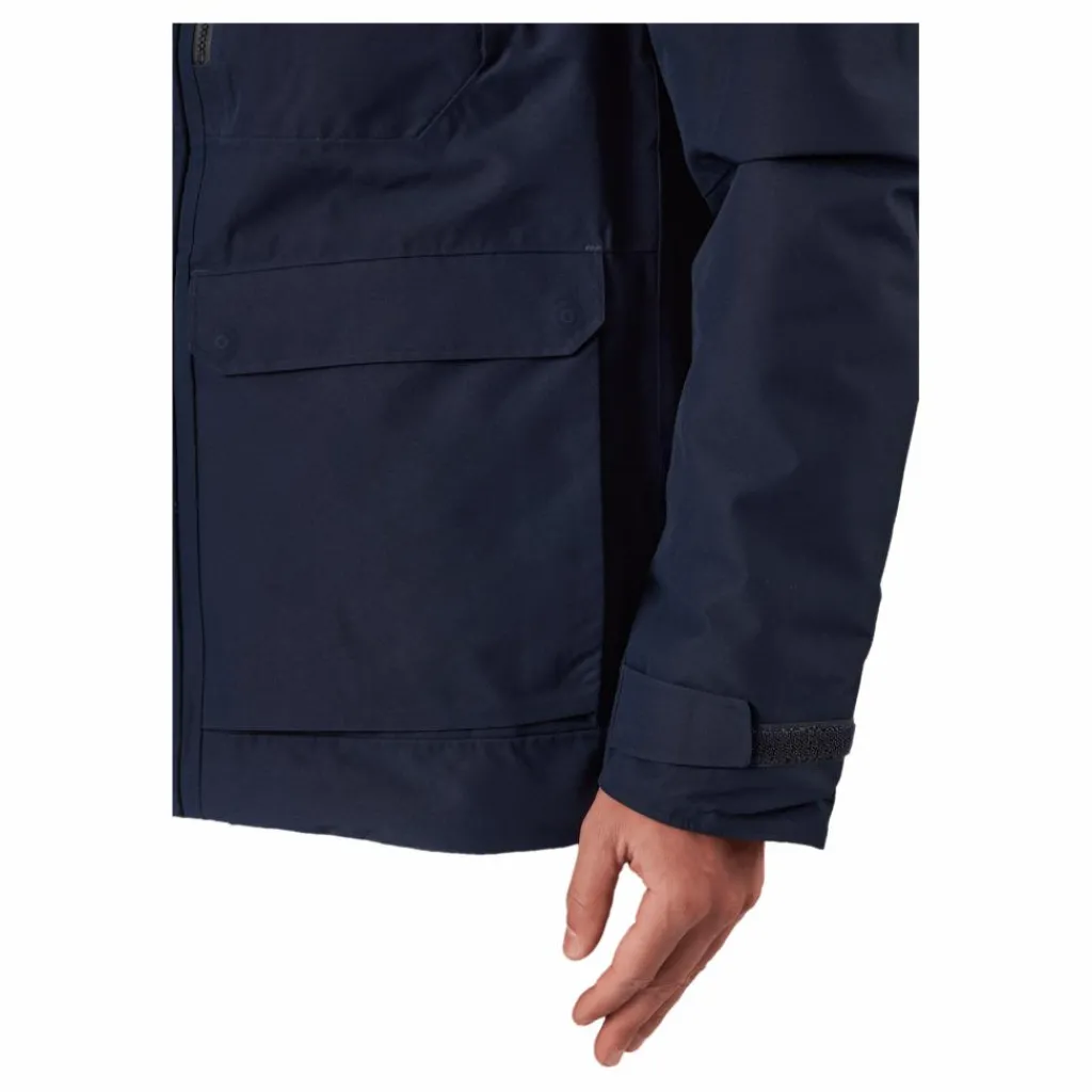 Sebastian är en vadderad, helt vindtät och vattentät jacka med tejpade sömmar. Lika passande att bära i stan som på landet. Den har en vanlig, rak passform. Sebastian är gjord av ett mjukt polyestertyg med en slät, matt finish.Jackan har tejpade svarta reflexdetaljer runt den vadderade, justerbara och avtagbara huvan.Didriksons namn och logga i reflextryck på bröstet och på ena axeln på ryggen. Reflekterande dragkedja. Det finns fyra fickor på framsidan, varav två kan nås från två sidor. Ena fickan har en vattenavvisande dragkedja, medan de andra har tryckknappar. Innerficka med dragkedja och två innerfickor i mesh. Flexibel fullängds tvåvägsdragkedja fram med en skyddande stormklaff. Jackan kan justeras med dragsko i fållen och ärmsluten kan även justeras. Ärmarna har elastiska muddar med tumhål. Isoleringen är gjord av 100 % återvunna fibrer och fodret har färgats med Solution Dye, en färgteknik som sparar upp till 80 % vatten jämfört med konventionellt färgat polyester/polyamidtyg. För de svarta, mörka nattblå och djupgröna färgerna är skaltyget också lösningsfärgat. PFC-fri vattenavvisande finish.