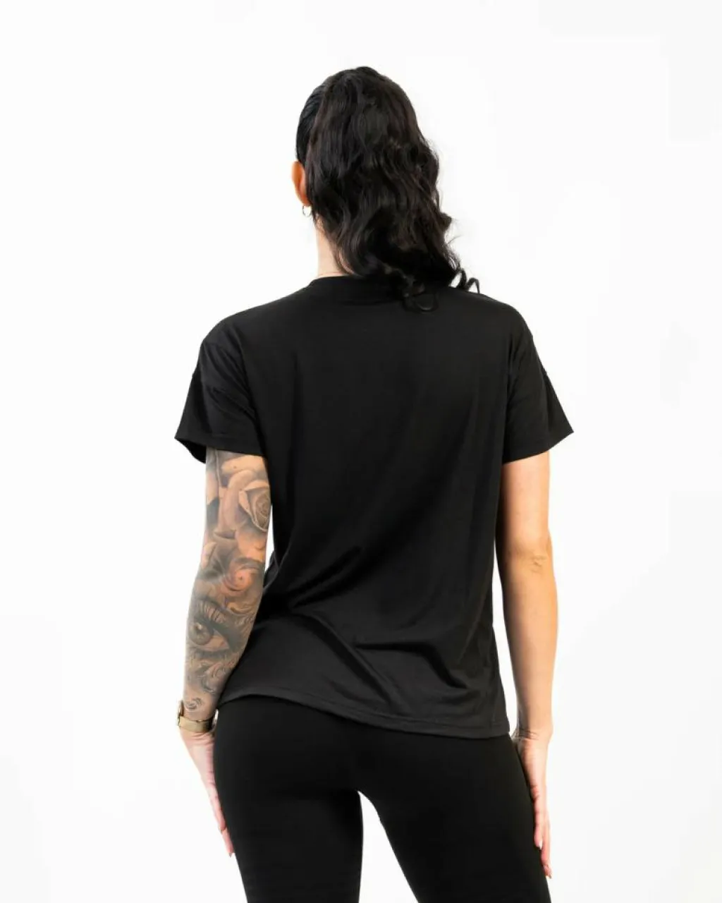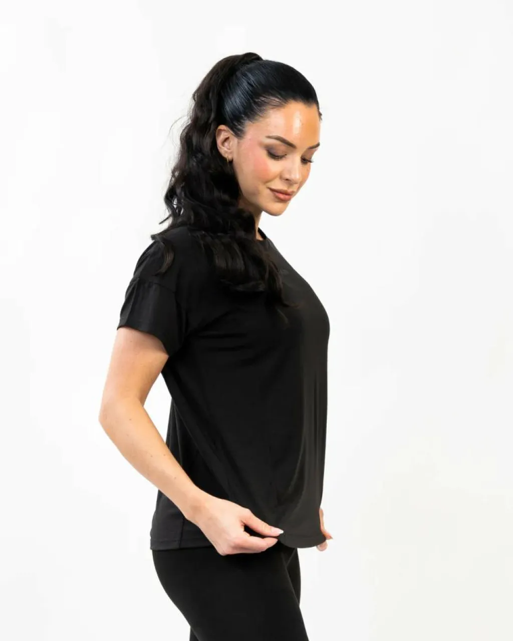 GAVELO Soft Performance Tee Black är en svart kortärmad T-shirt med en ton-i-ton Gavelo-logotyp på bröstet. En snygg och avslappnad t-shirt tillverkad i ett tunt, mjukt tyg som känns bekvämt mot huden. Den har en lös passform som ger en lätt och bekväm känsla – perfekt för både träningspass och en aktiv vardag.