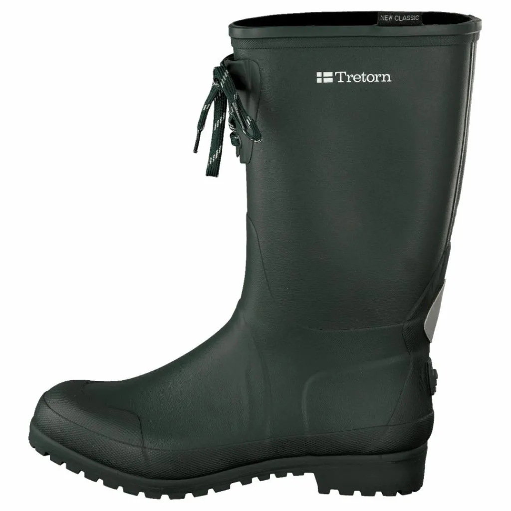 Den här gummistöveln ifrån Tretorn är tillverkad i natugummi, som i sin tur kommer från en mjölksaft som kallas latex, som finns i flera olika träd. Skafthöjden är ganska hög med 37 centimeter och sulan är uppbyggd för långa, sköna skogspromenader. Skaftet på stöveln är justerbart, mellansulan är förstärkt i hålfoten och inuti finns lite grövre mery-mesh foder.