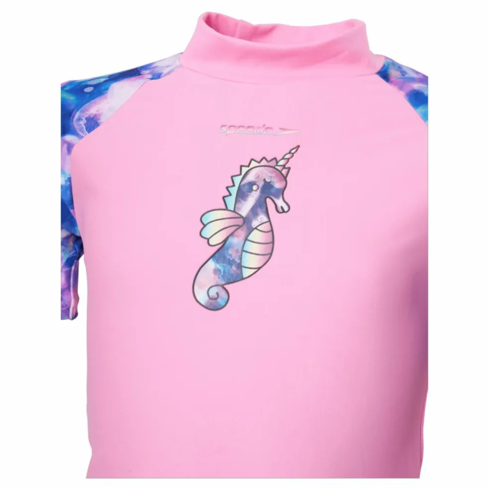 Speedos UV-skyddstopp och baddräkt är ett måste för alla som bor eller besöker platser nära vattnet. Den har solskydd så att du kan njuta av det varma vädret och stranden hela dagen. Den här dräkten är gjord av ett mjukt, klorbeständigt tyg som inte bleknar i vatten och den har också en UPF-klassning för att blockera 98 % av farliga UV-strålar. Tyget är snabbtorkande, lätt och