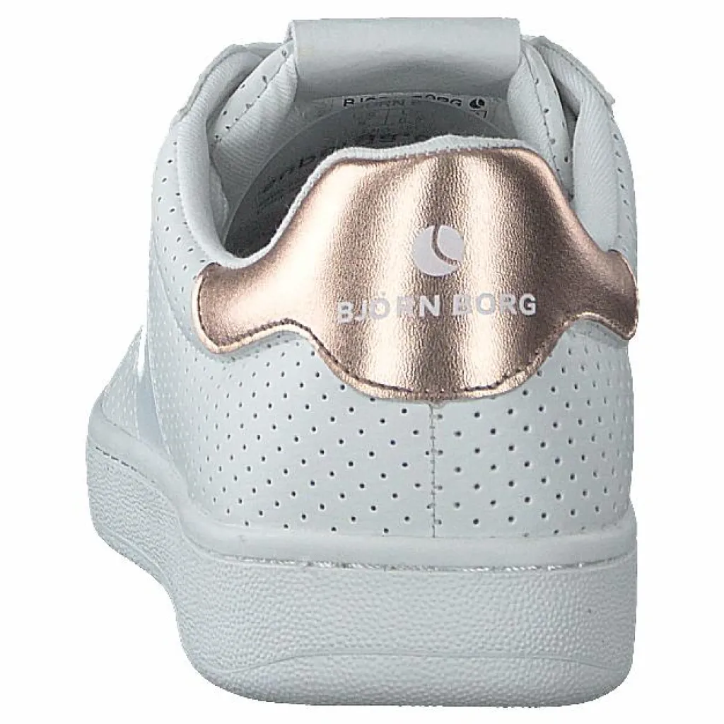Märket ”Björn Borg”s senaste och mest fashionabla sneaker. Färgkombinationen är den perfekta blandningen av guld, vitt och naturligt. De är gjorda av ett syntetiskt läder i en unik design som är både sportig och avslappnad.