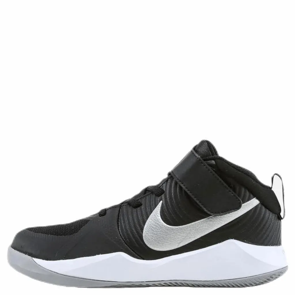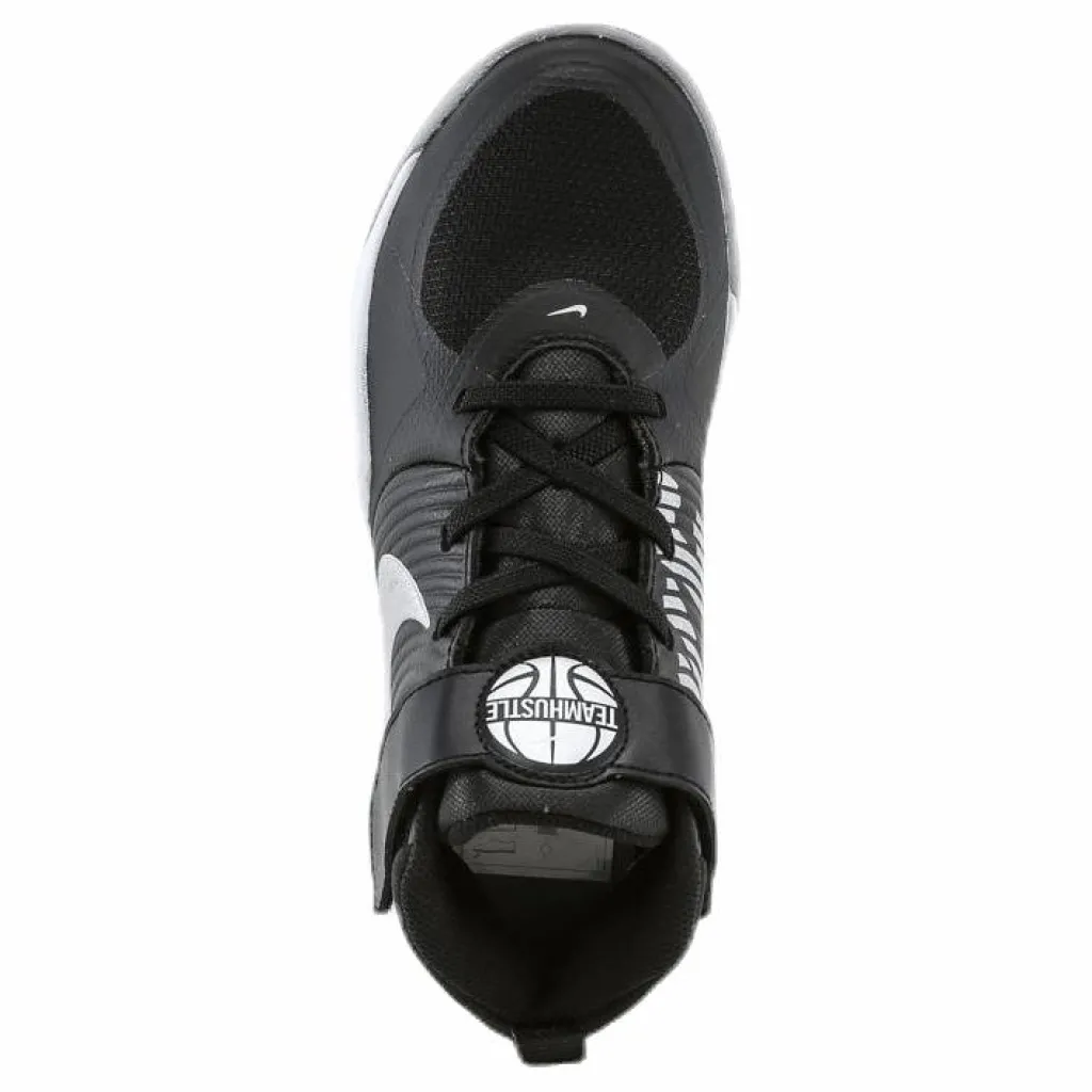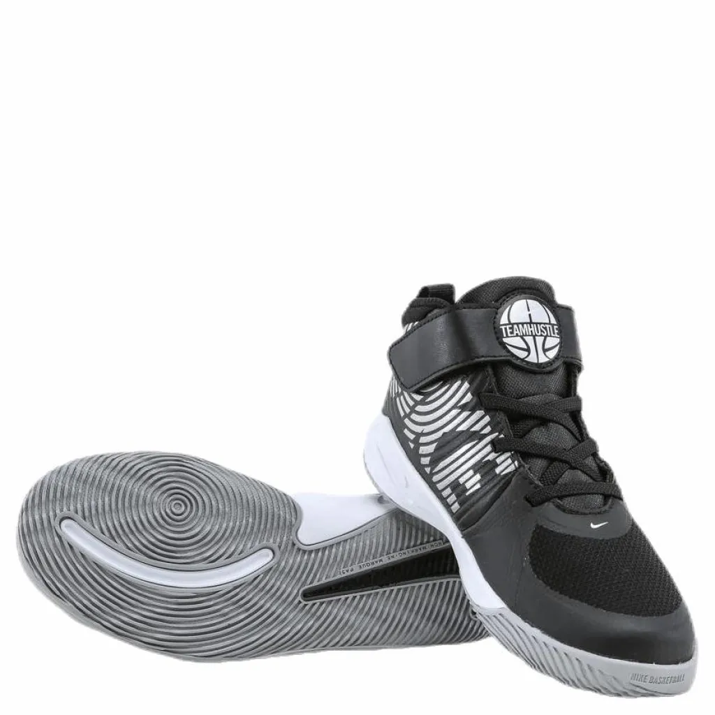 Nike Team Hustle D 9 hämtar sin stil från basketplanen i en tålig design. Det lättviktiga tyget runt framfoten är ventilerat, och lädret runt sidorna skapar struktur. Mjukt skum skyddar små fötter för komfort som varar hela dagen.