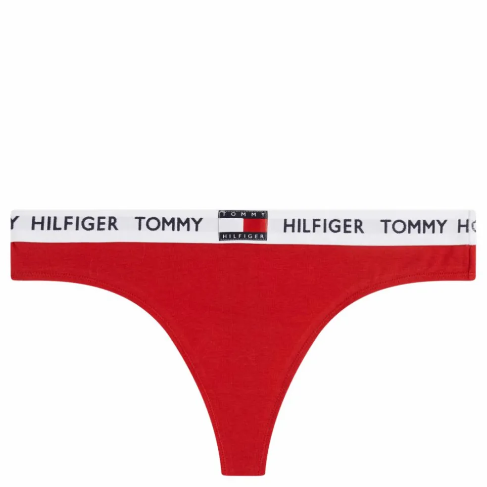 Tommy Hilfiger THONG XCN röda underkläder i bomull & återvunnen bomull med 9% elastan, polyester & spandex, med logotypen mitt bak och längst ner på byxorna.