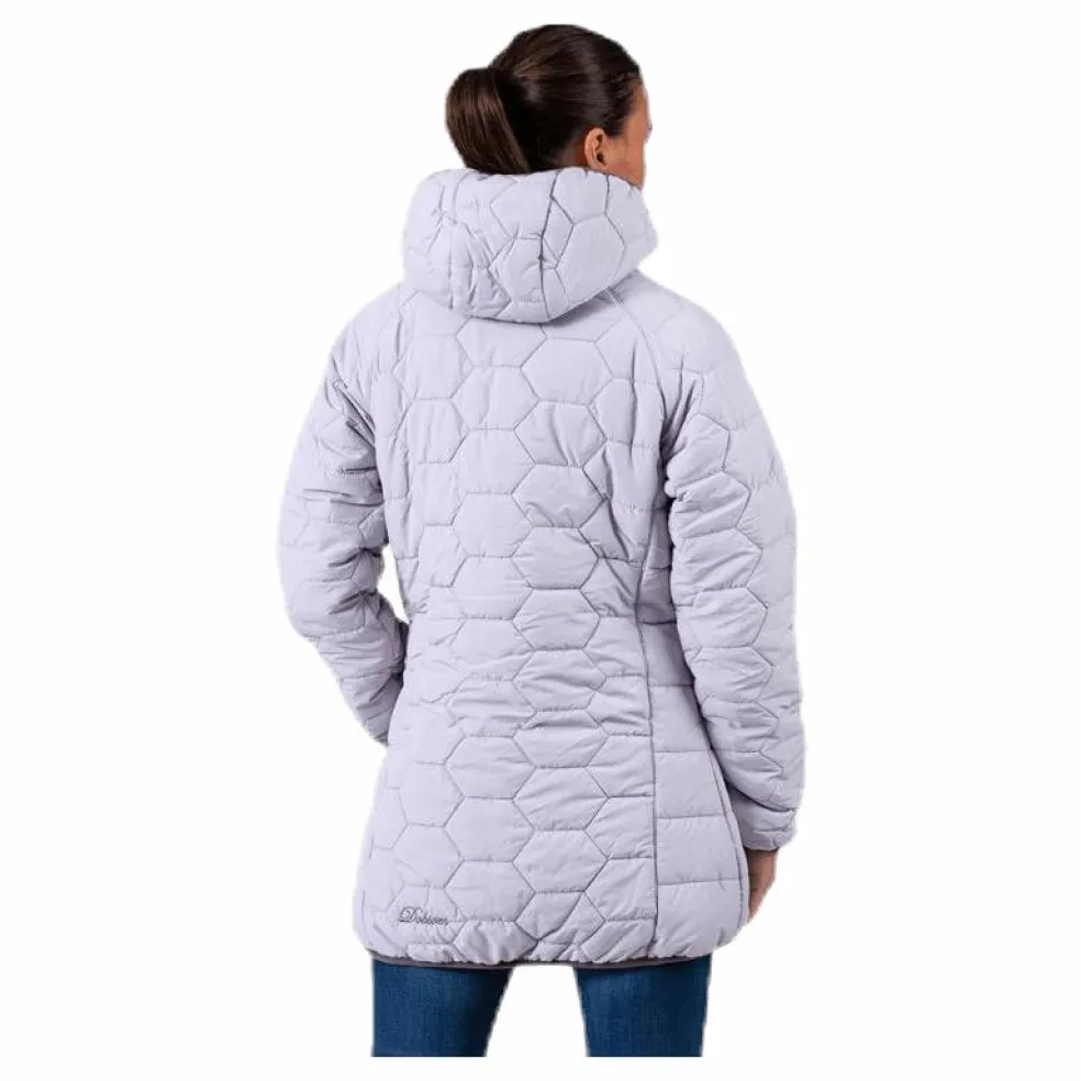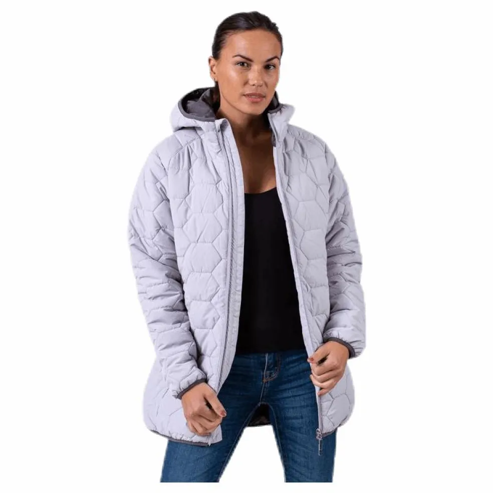 Varm, smidig och mycket lätt damjacka som går ned över stussen. Fast huva, 2 sidfickor samt en ficka på insdan. 2-vägsblixtlås i fronten. Kan användas vid de flesta tillfälle. 100% Polyester