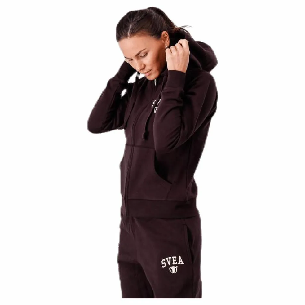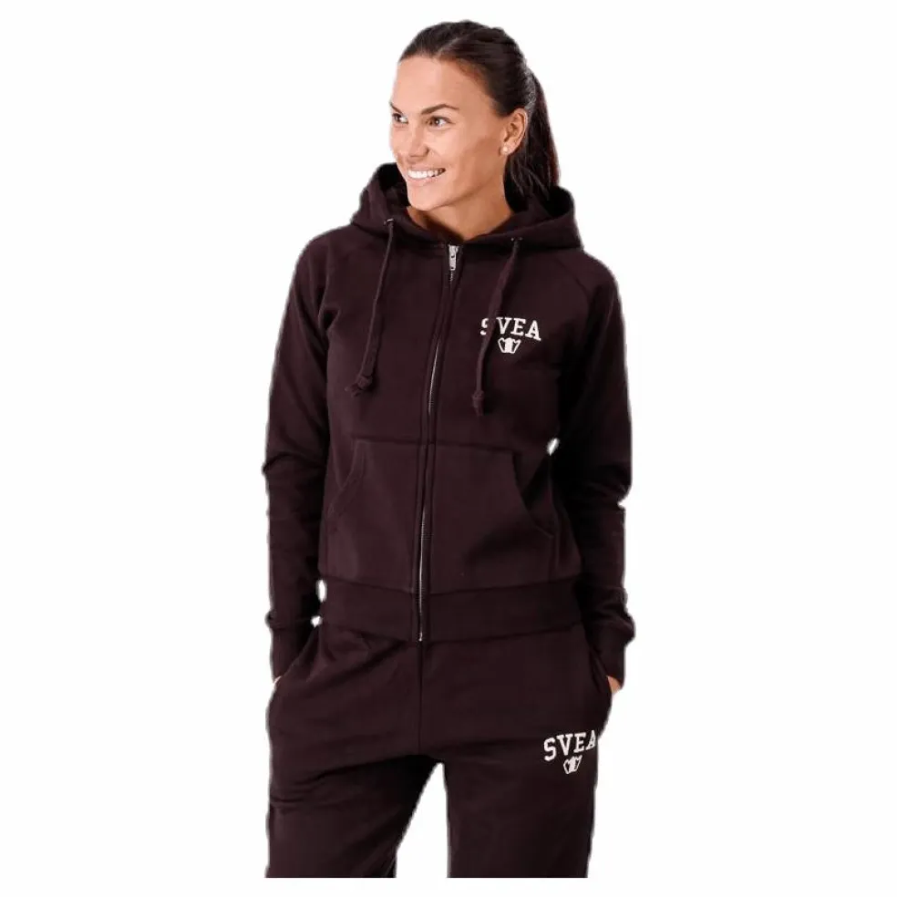 Skön Zip-Hood tröja i tjock bomullskvalitet, luva med tjock bomullsdragsko som avslutas med knutar. Ribbstickade muddar i nederkant och ärmslut. Broderad logga och trefärgad krona på vänstra bröstet.