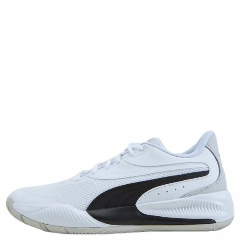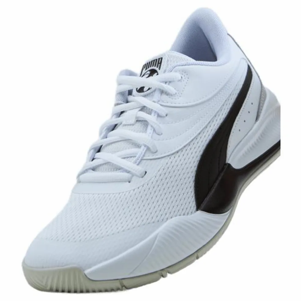 Dessa skor utgör ett tredubbelt hot mot motståndare, med tre oslagbara vapen för ditt tävlingsvapen. För det första ger ProFoam-mellansulan hög rebound-dämpning för förhöjd studs. För det andra ger gummiyttersulan överlägsen grepp och kraft över banan. Och slutligen, prestandanätet, överläggen och PUMA Formstrip-detaljer gör att de ser lika hårda ut som ditt spel.
