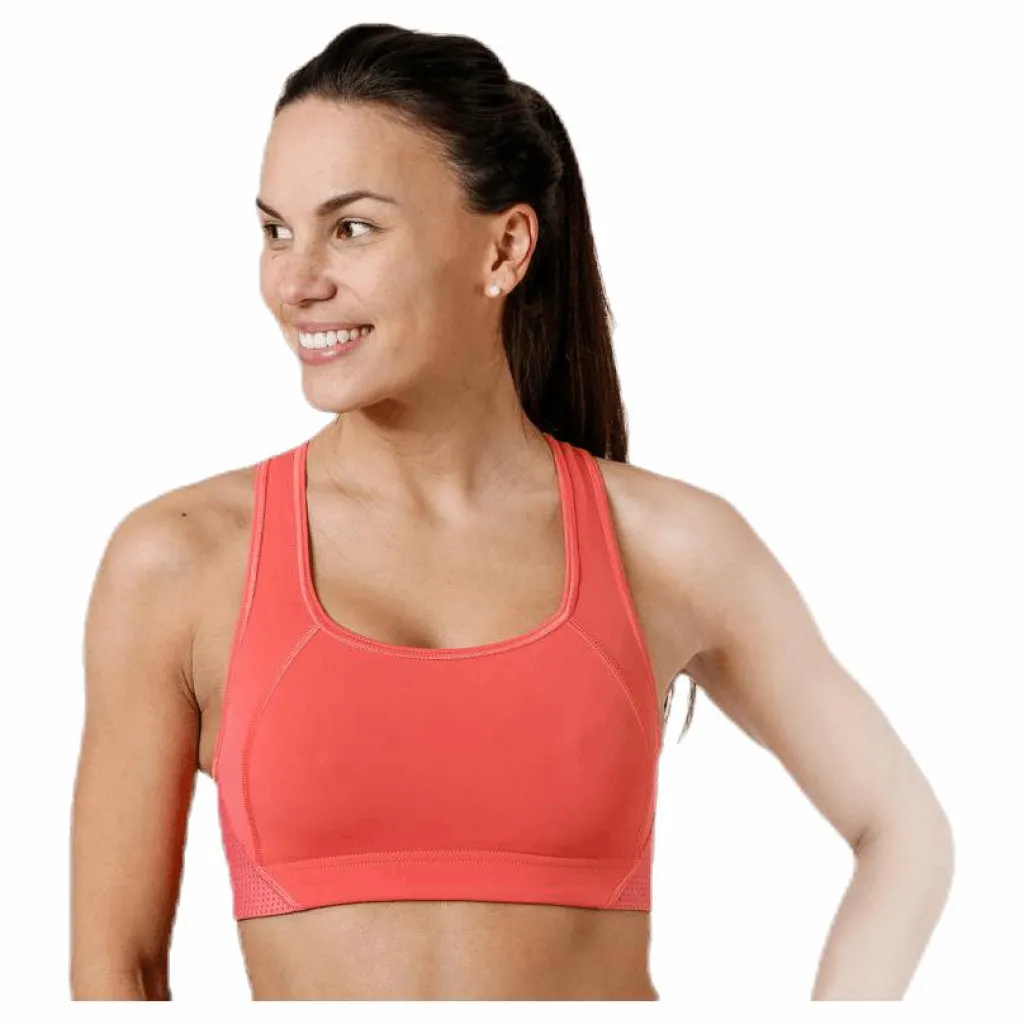 EN SPORT-BH MED MEDELSTÖD OCH MESHPANELER FÖR EFFEKTIV VENTILATION. DE SKAVFRIA SÖMMARNA GER OPTIMAL KOMFORT. RACERBACK-DESIGNEN GER DIG RÖRELSEFRIHET.