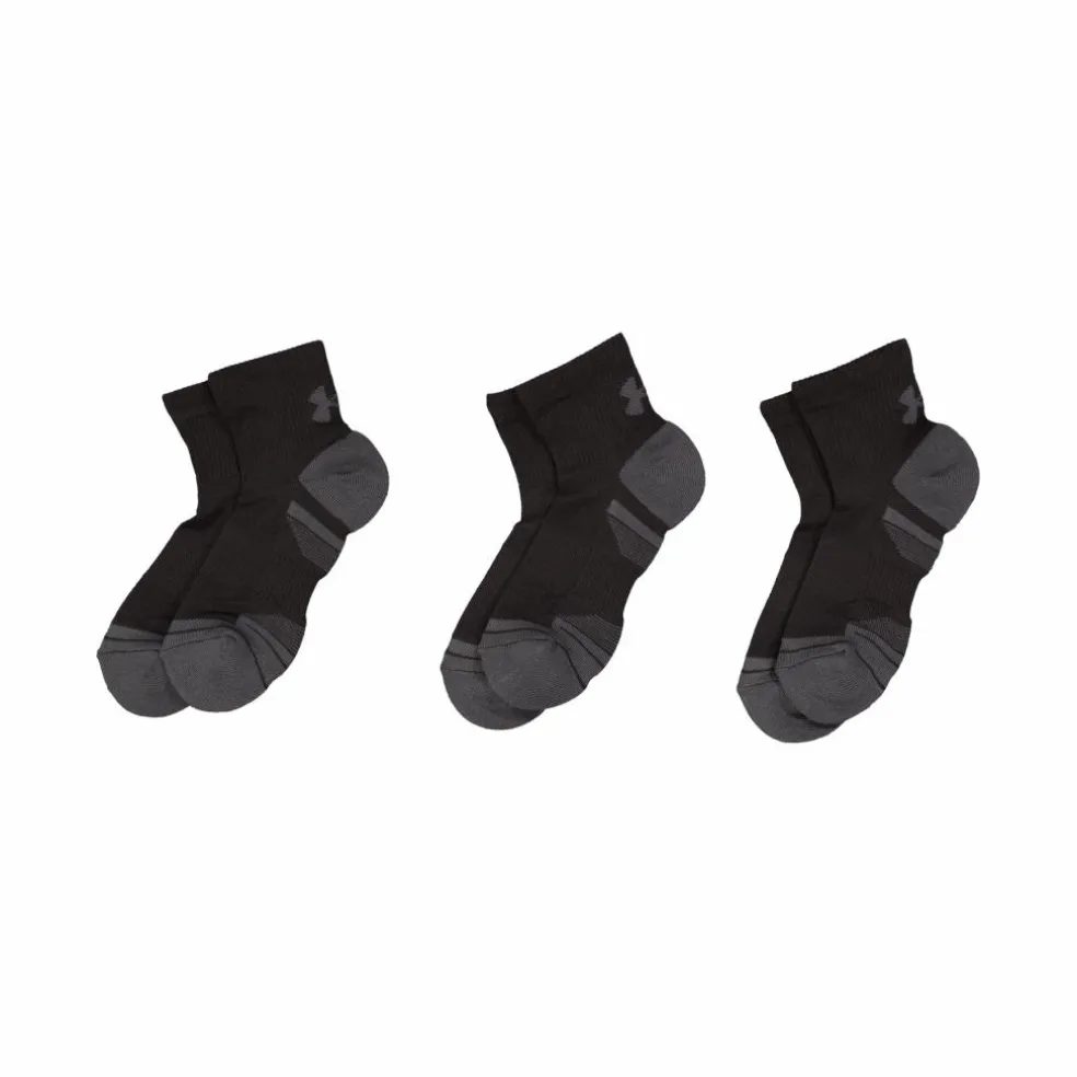 UA Performance Tech 3pk Qtr är det perfekta valet för aktiva individer. Det slitstarka materialet leder bort svett och torkar snabbt, medan Locked-In Fit-designen håller strumpan säker och på plats. Medium dämpning och inbyggt valvstöd ger komfort och skydd, medan meshpaneler ökar andningsförmågan. Antiluktteknik håller fötterna fräscha, vilket gör dessa till de idealiska strumpor för idrottare.