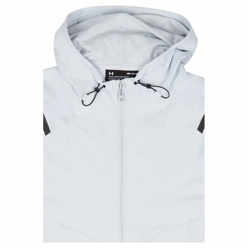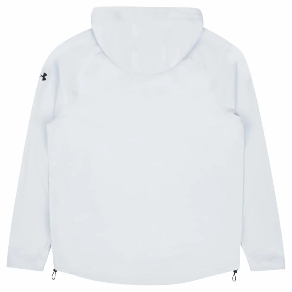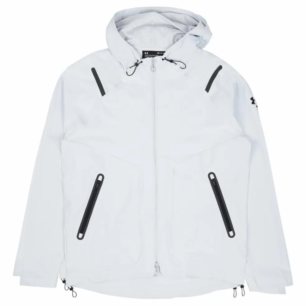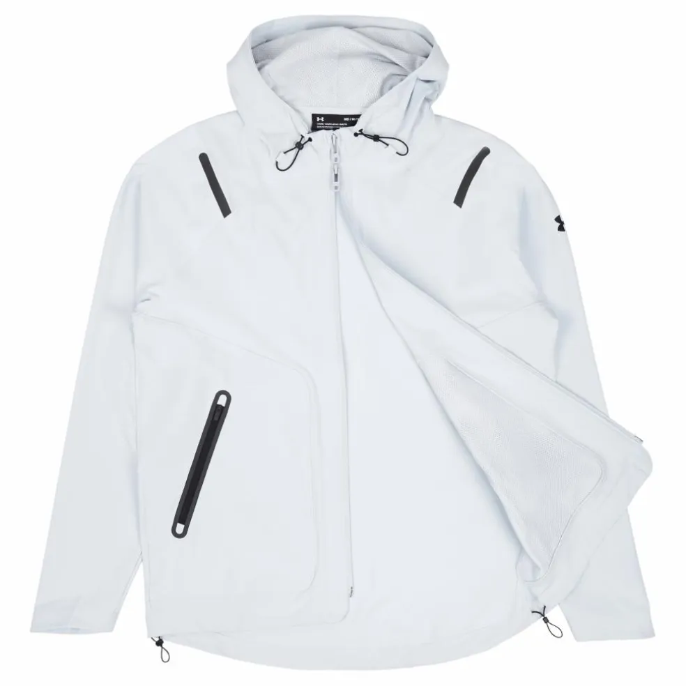 UA Storm-teknologi stöter bort vatten utan att ge avkall på andningsförmåga; Stretchvävt tyg är lätt, slitstarkt och rör sig med dig; 4-vägs stretchmaterial rör sig bättre i alla riktningar; Bungee justeras vid huvans öppning och nederkant för enkel justerbarhet och en säker passform; Säkra handfickor med dragkedja; Formad fåll och ärmslut
