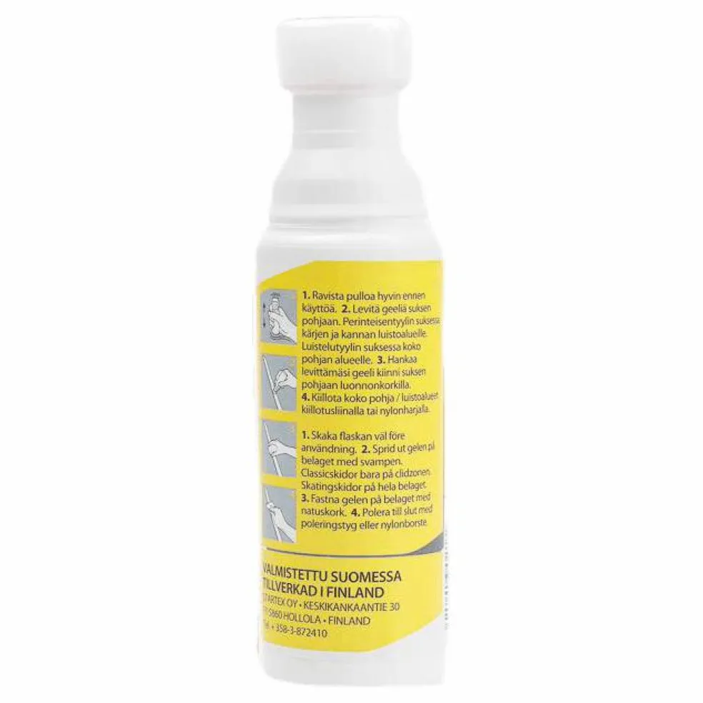 Ultra Gel är en ny snabbglids produkt från Start. Den vattenbaserade gelen appliceras på skidans glidzoner och stryks ut med hjälp av svampen. Ger skidan fantastiskt glid i flera mil framöver, miljövänlig. +5..-10°C.