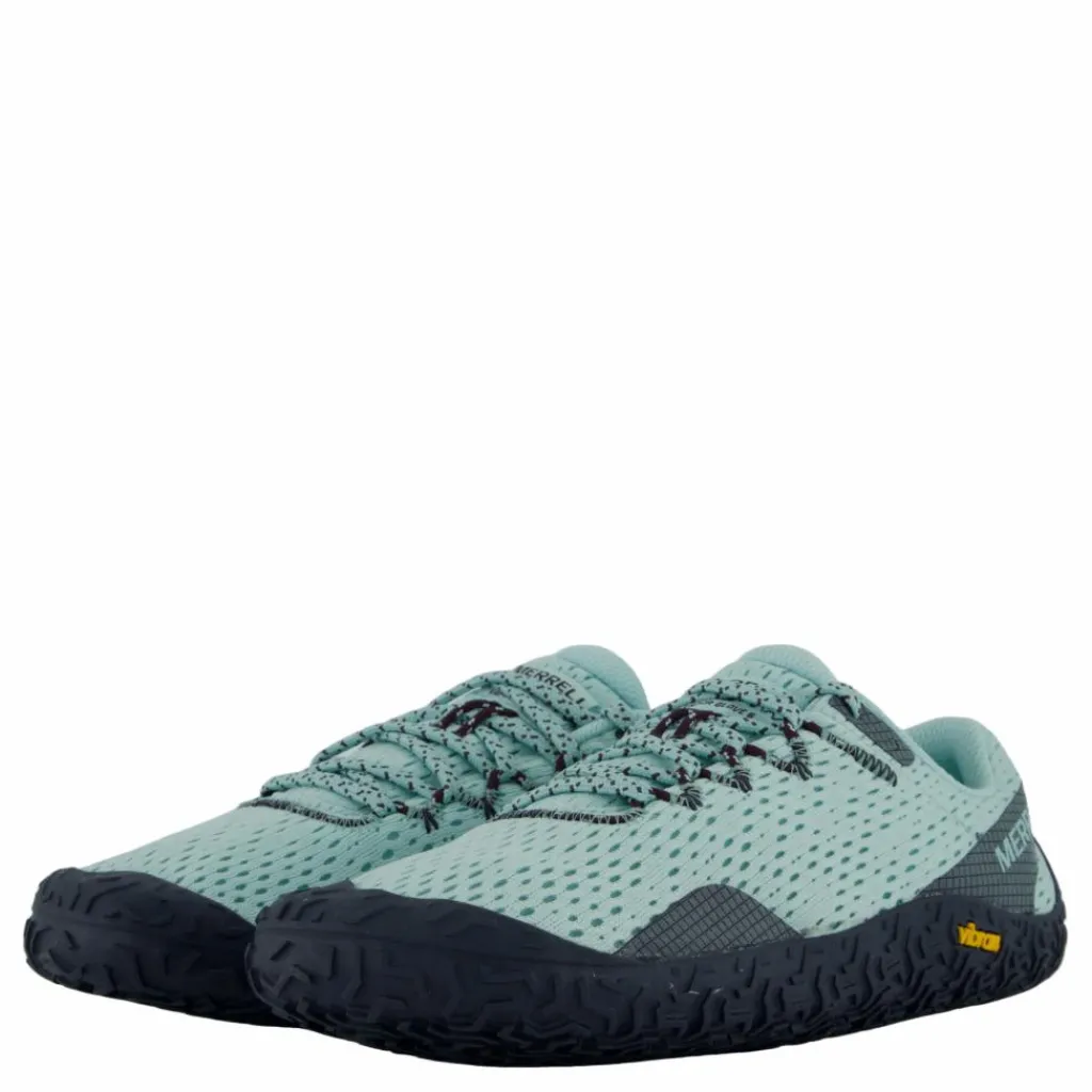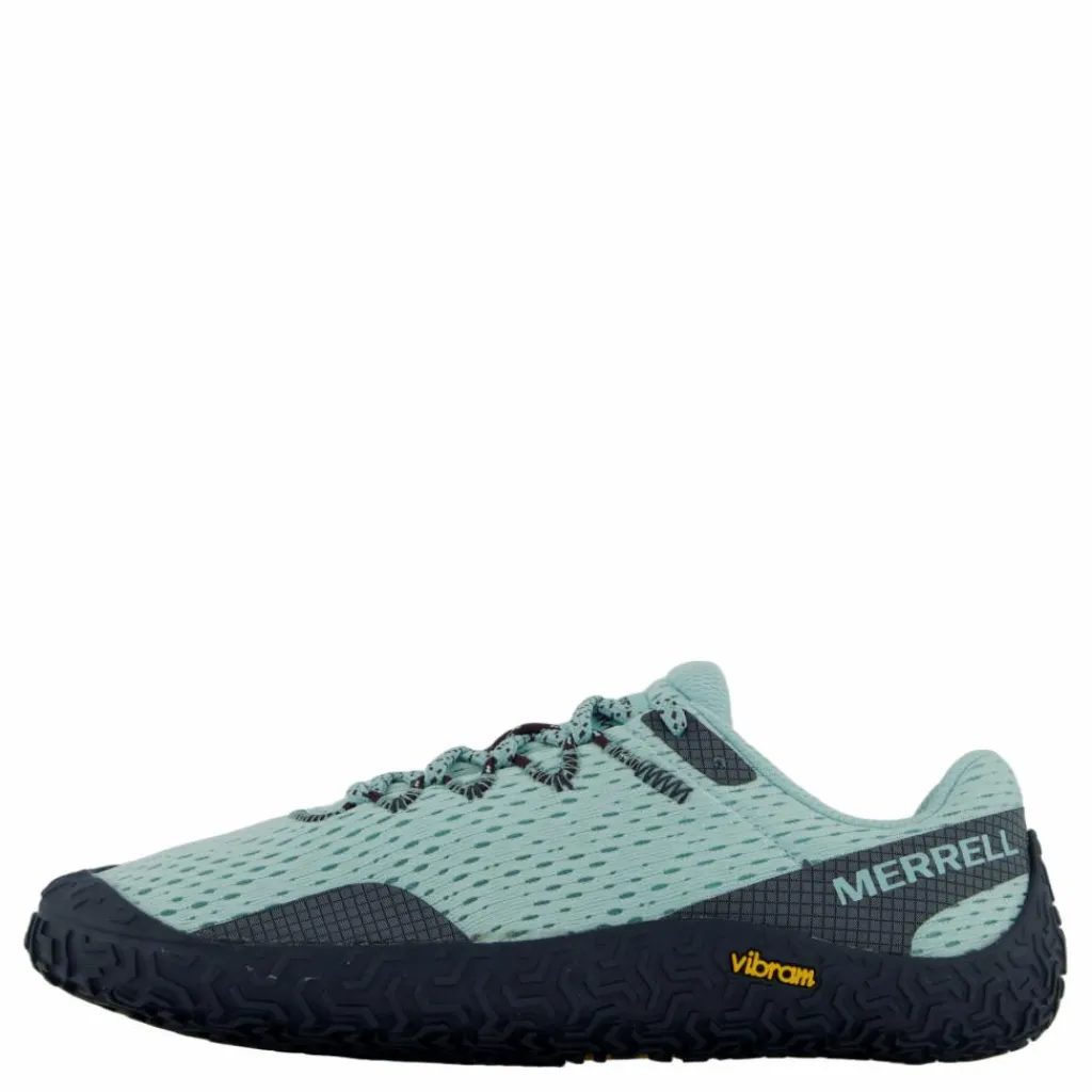 Ovandel i 100 % återvunnet mesh, 100 % återvunna snören och webbing, Merrell Barefot 2-konstruktionen är designad för att hålla foten i en naturlig position, Vibram Ecostep-yttersula med 30 % återvunnet gummi.