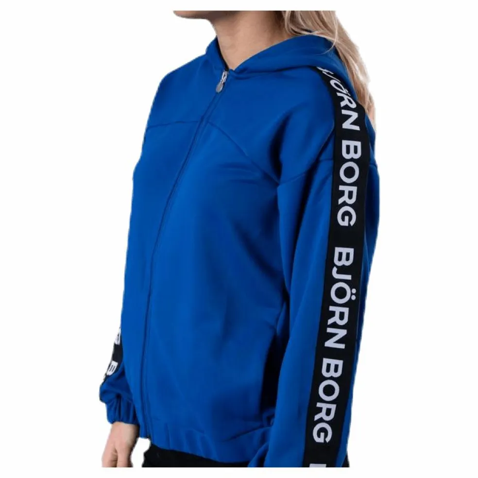 Säsongens Team Borg Women Vct Jacket kommer i knalligt blå och klassiskt svart, med band med Borg-tryck på ärmarna. Midja och ärmslut är bekvämt elastiska. Jackan har luva och är tillverkad i 100% polyester och med blixtås fram.