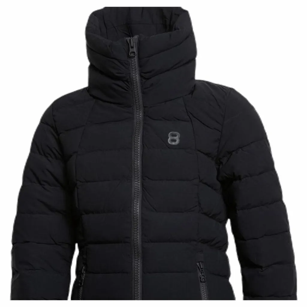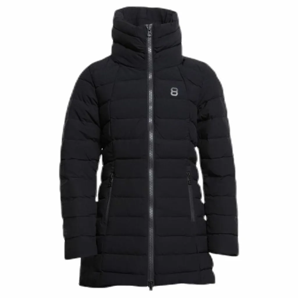 ”Längre jacka för junior, tillverkad i stretchigt yttertyg och fylld med mjuk och värmande premium dun. Stilren, snygg design med extra hög krage för fin komfort. Två ytterfickor med tåliga dragkedjor från YKK. 2-vägsdragkedja fram för att kunna öppnas nerifrån när man sitter. Mjuk fleece på insidan av ärmsluten. Vadderad med 650fp premiumdun (90/10). 8848 Altitude använder ankdun som är en restprodukt från livsmedelsindustrin och som aldrig plockas från levande djur. Alla produkter från 8848 Altitude är 100% fria från fluorkarboner!”