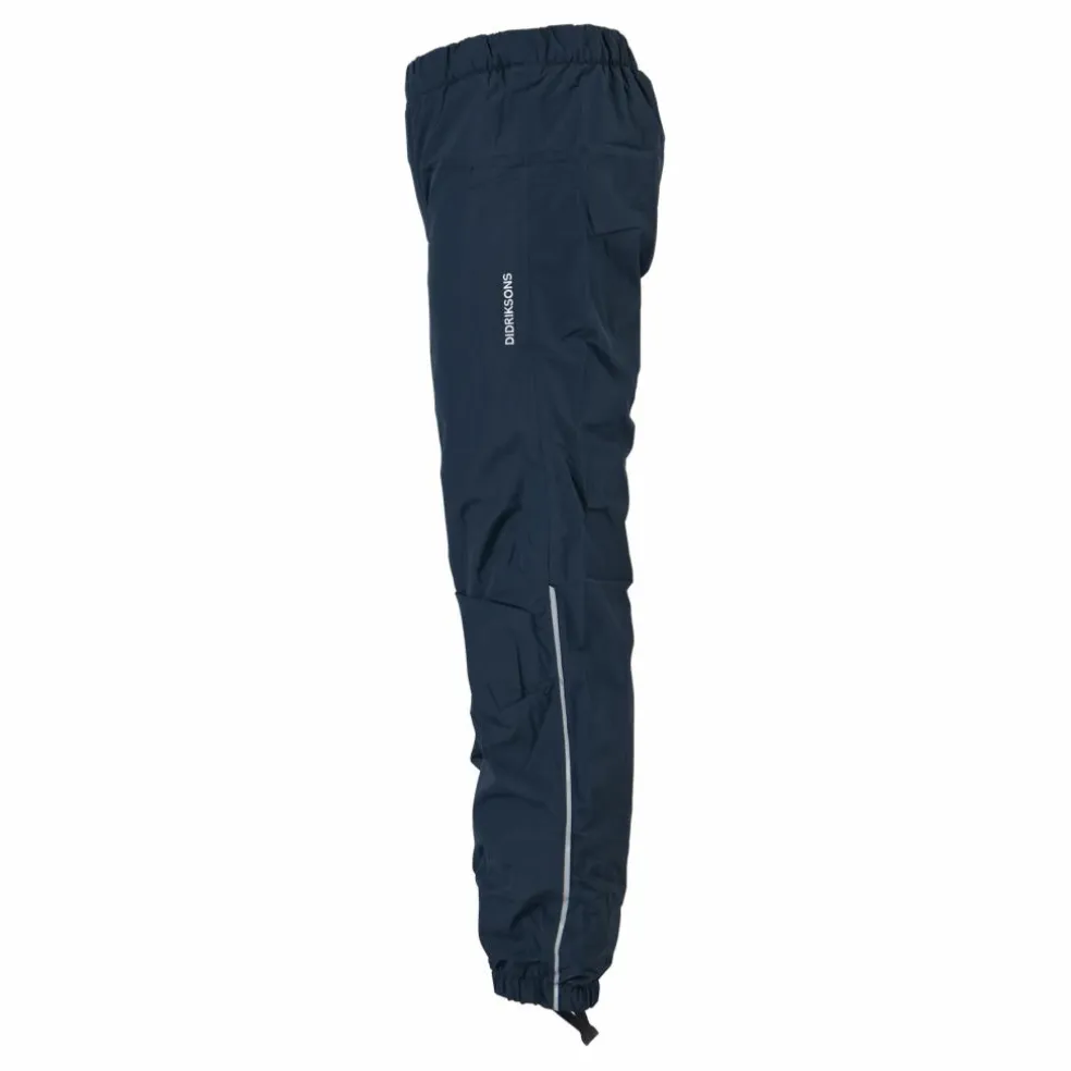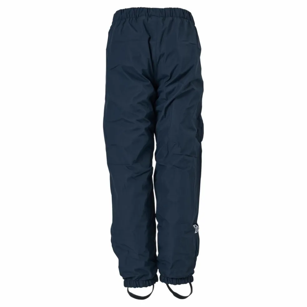 Vin är en vind- och vattentät överdragsbyxa med andasfunktion och tejpade sömmar för en 100% vattentät konstruktion. Den är tillverkad helt av återvinningsbar polyester. Att byxan är återvinningsbar innebär att när den inte längre används eller är brukbar så är plagget förberett för att återvinnas. Byxan har en värmande fleecefodrad insida och har en mjuk och slät yta med resår i midja samt benslut. Byxan väger nästan ingenting och är utformad för massor av lek och rörelse. Reflexdetaljer på benens sidor. Slitstarka och utbytbara fothällor i silikon ser till att byxan inte åker upp. Byxan är utrustad med ”Extend Size” vilket innebär att benen kan förlängas upp till en storlek genom att lossa en söm. Vattenavvisningen är PFC-fri.