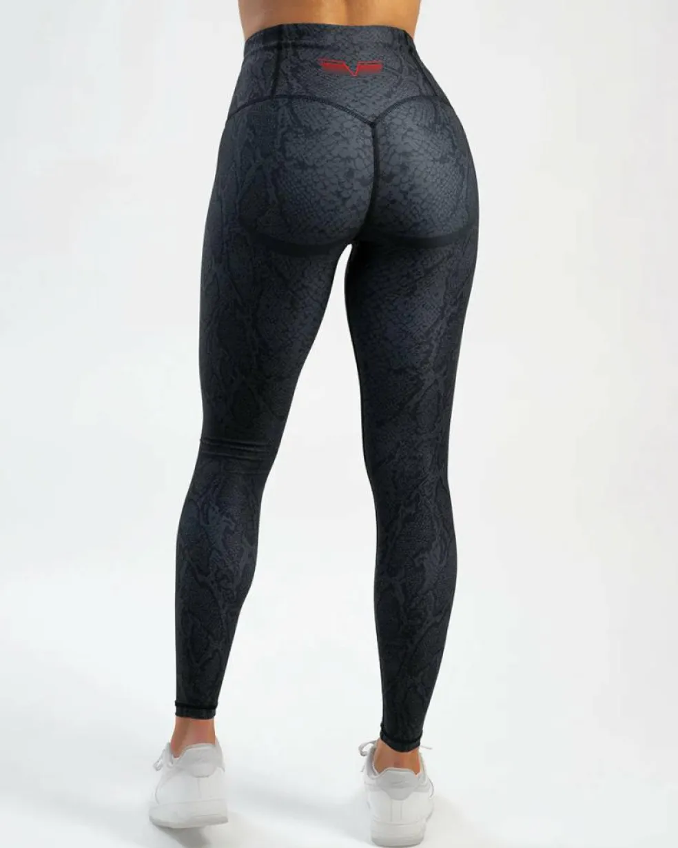 Kompressionstights med hög midja och V-formad rygg för en smickrande siluett. Det reptil- och klassiska modeinspirerade mönstret kombinerar stil med funktion och erbjuder en bra passform och högkvalitativt material.