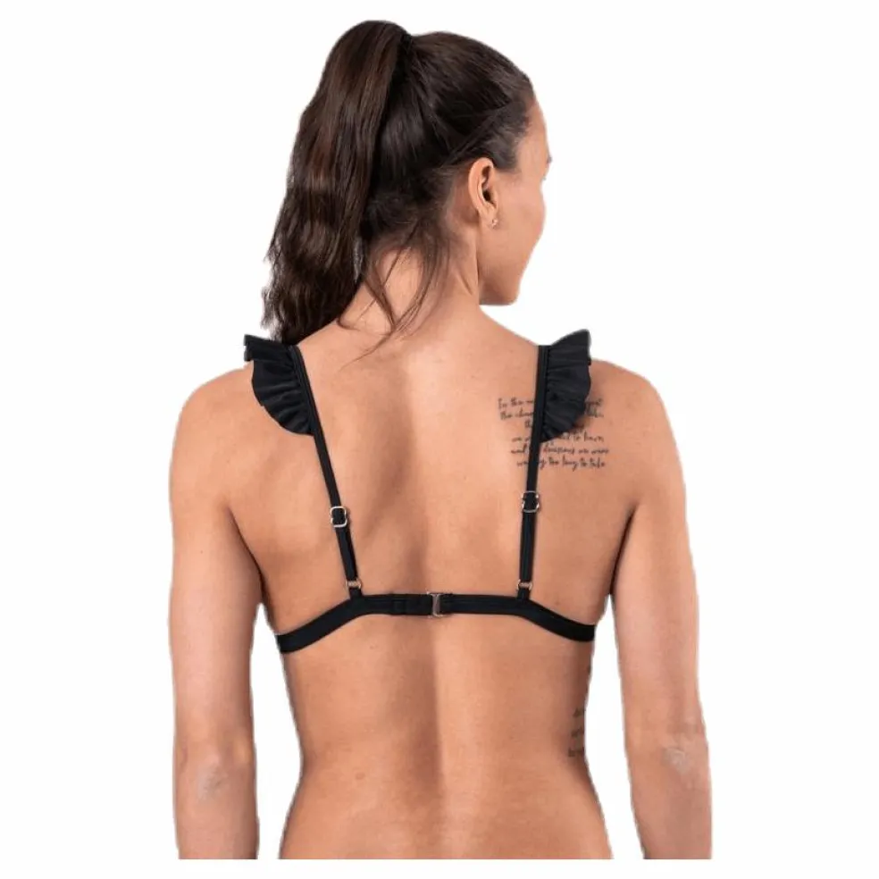 Trekantsbikini med fina volanger längs med axelband och urringning. Toppen har trestegsknäppning i ryggen och justerbara axelband för reglerbar passform. Uttagbara kupor och mjukt innerfoder. Matcha med Wikolia frill brief eller annan trosa från Waikani Beachwears sortiment. Material: 85% polyester, 15 % elastan.