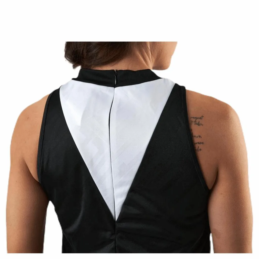 Flash sporty style. För en elegant look har denna damklänning slim fit gjord av slät jacquard. En hög krage ger den en modern känsla. Djärva kontrastdetaljer bryter av mot den stilrena designen.