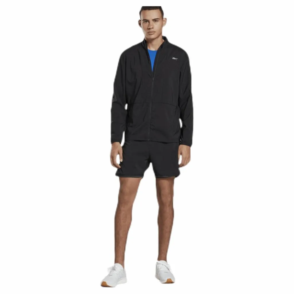 Jaga ditt personbästa. Denna löparjacka för herr är gjord av tyg som leder bort svett och har meshpaneler för extra ventilation. Retro-inspirerade färgblock är en blinkning till Reeboks löpararv.