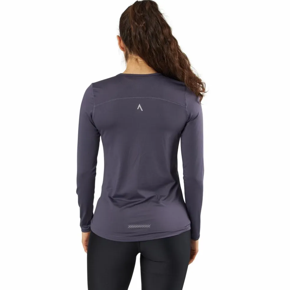 Snygg löpartröja i tunt och skönt funktionsmaterial och lång ärm. Meshpanel över skulderbladen för god ventilation. Reflexdetaljer både fram och bak så du syns under hela löprundan. Fint rundad nederkant som är något längre bak än fram. Material: 88% polyester, 12% elastan.