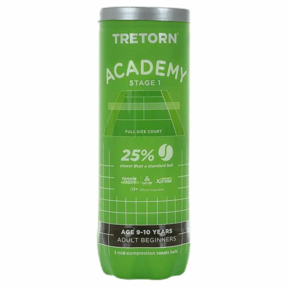 Mellankompressionsboll som passar barn 9-10 år och vuxna nybörjare. Mjukare och 20% lättare, 25% lägre studs och hastighet jämfört med vanliga tennisbollar. ITF-godkänd steg 1.