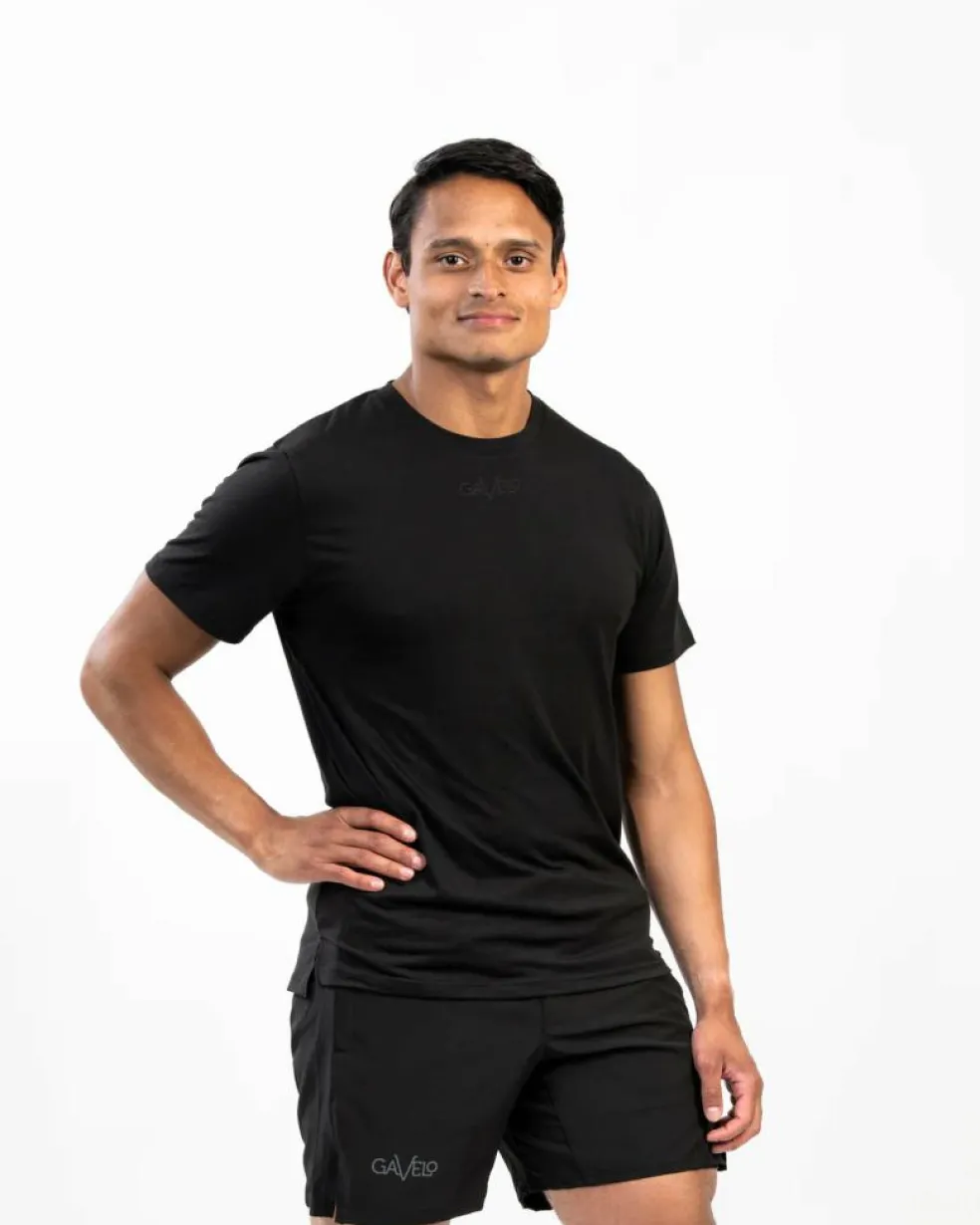 GAVELO Active Tee Black är en svart kortärmad T-shirt med en ton-i-ton Gavelo-logotyp på bröstet. En sportig och avslappnad t-shirt tillverkad i ett tunt, snabbtorkande material som känns bekvämt mot huden även under intensiva pass. Den har en lös passform som ger maximal rörelsefrihet och en bekväm passform – perfekt för både träning och en aktiv livsstil. Gör dig redo att sticka ut och prestera på topp samtidigt som du känner dig bekväm och självsäker.