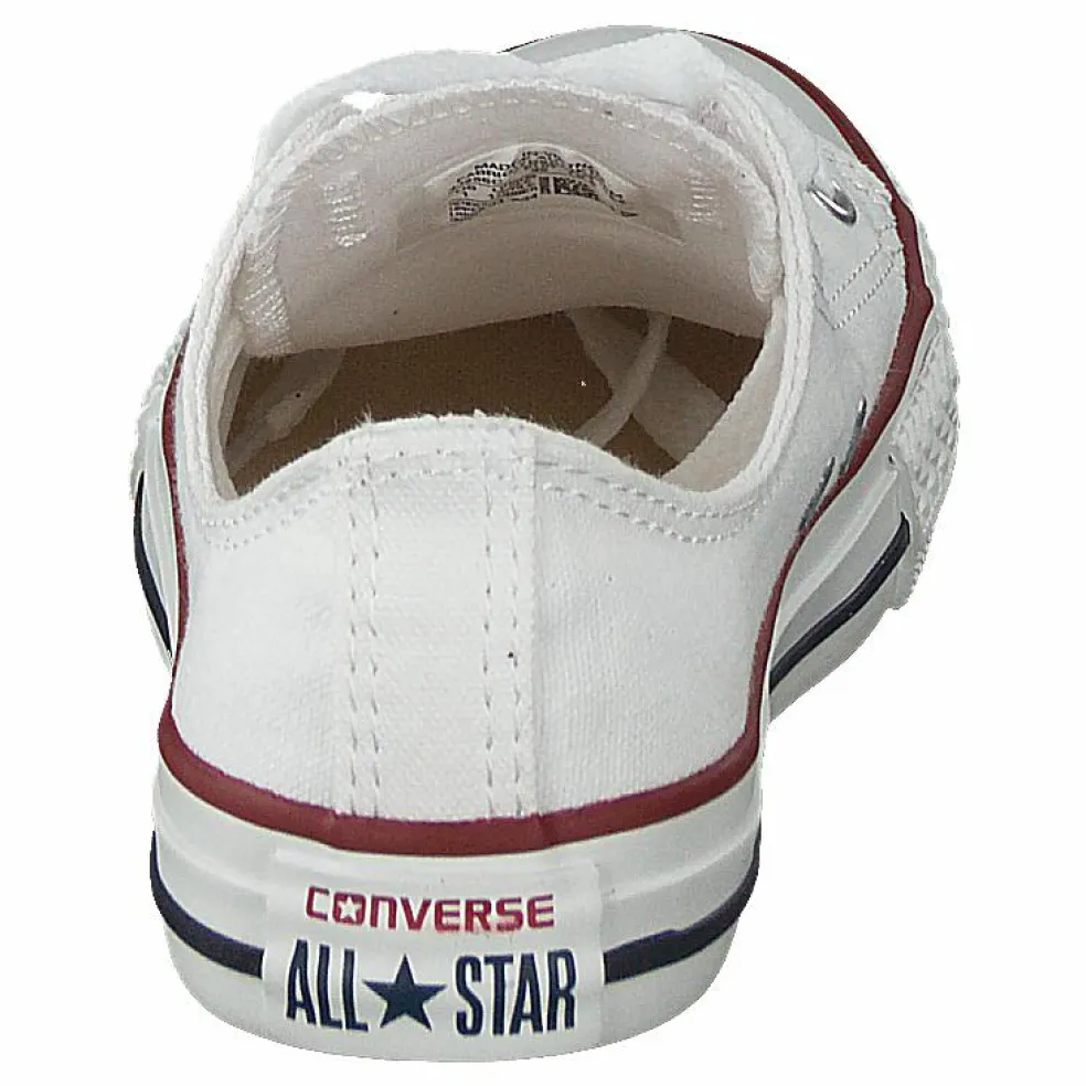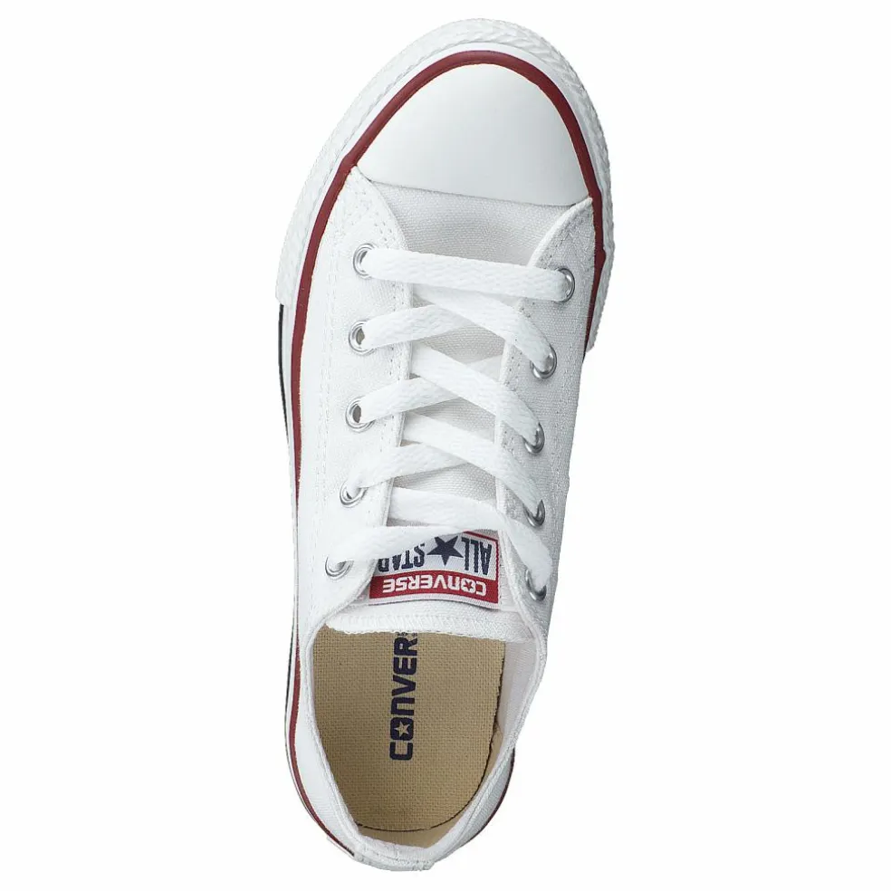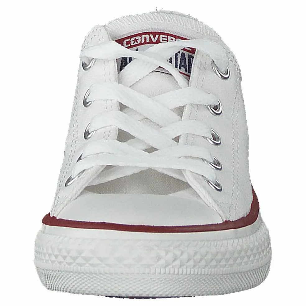 En låg sneaker från Converse i barnmodell. Återkommande klassiker i vitt som passar till allt. Yttermaterial i slitstark canvas och yttersula i gummi, snörning i vitt. En riktig favorit.