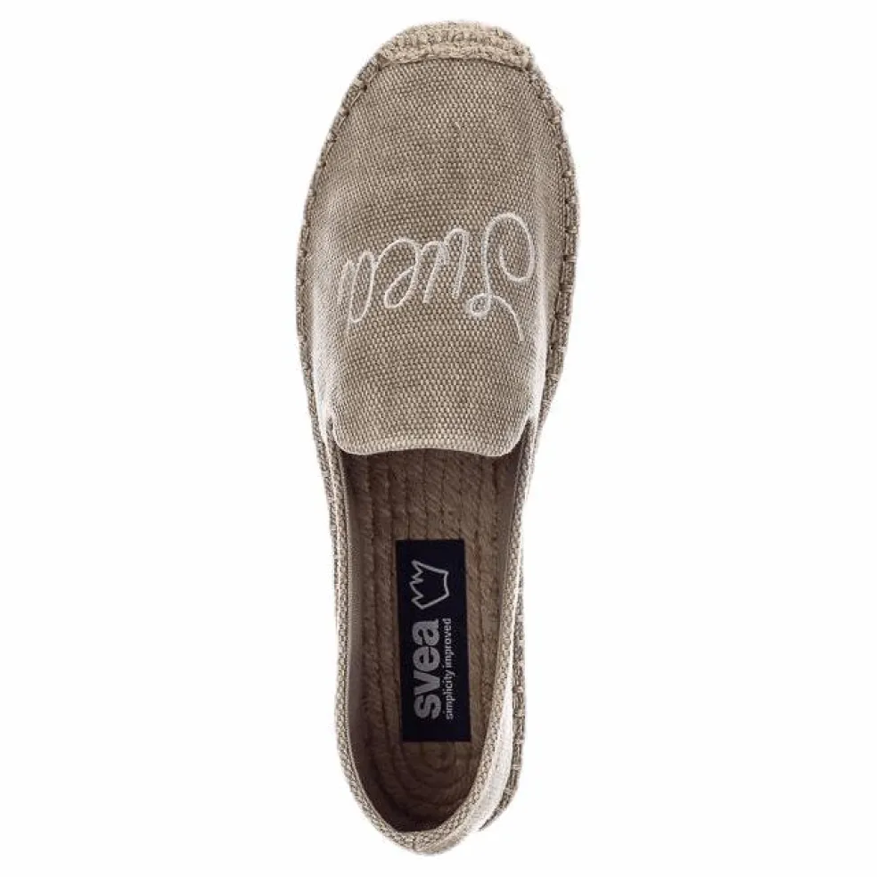 Espandrillos med yttermaterial i canvas och sula i jute och gummi. Svea logga mitt fram på ovandelen. Material: washed canvas