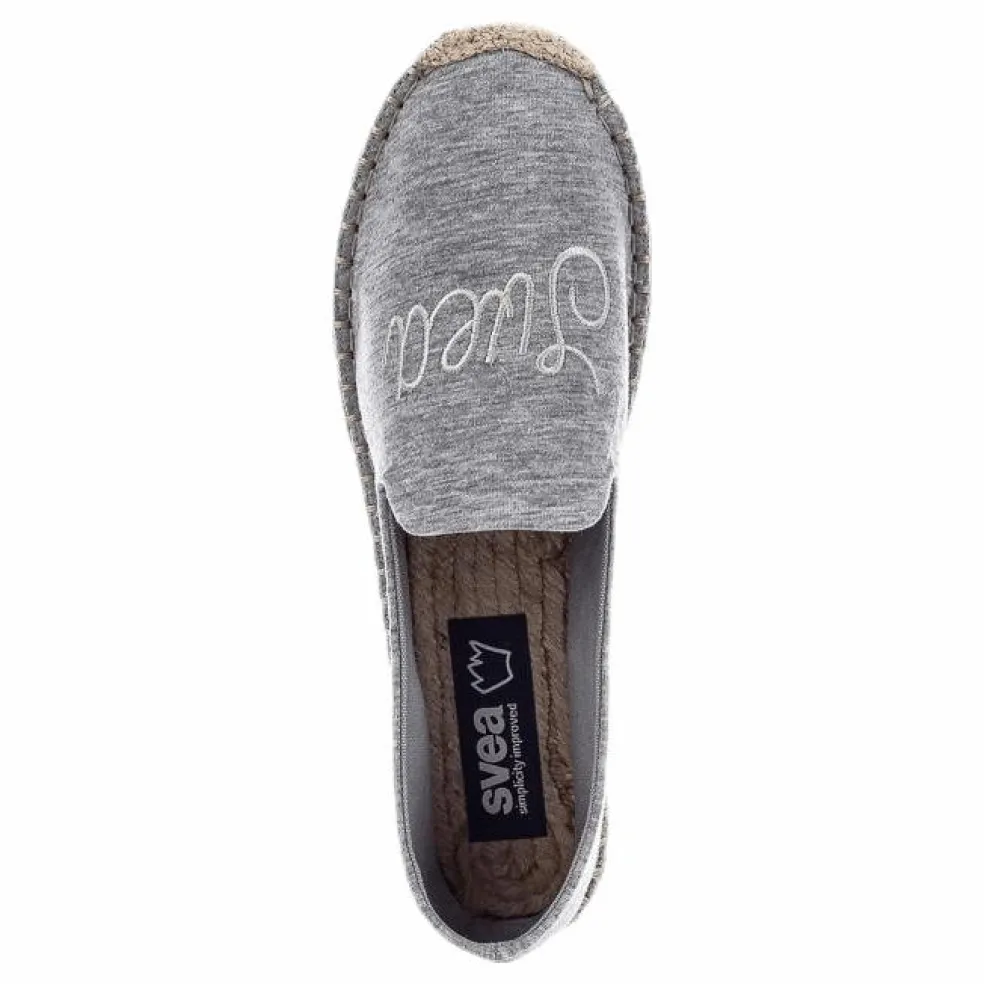 Espandrillos med yttermaterial i canvas och sula i jute och gummi. Svea logga mitt fram på ovandelen. Material: washed canvas