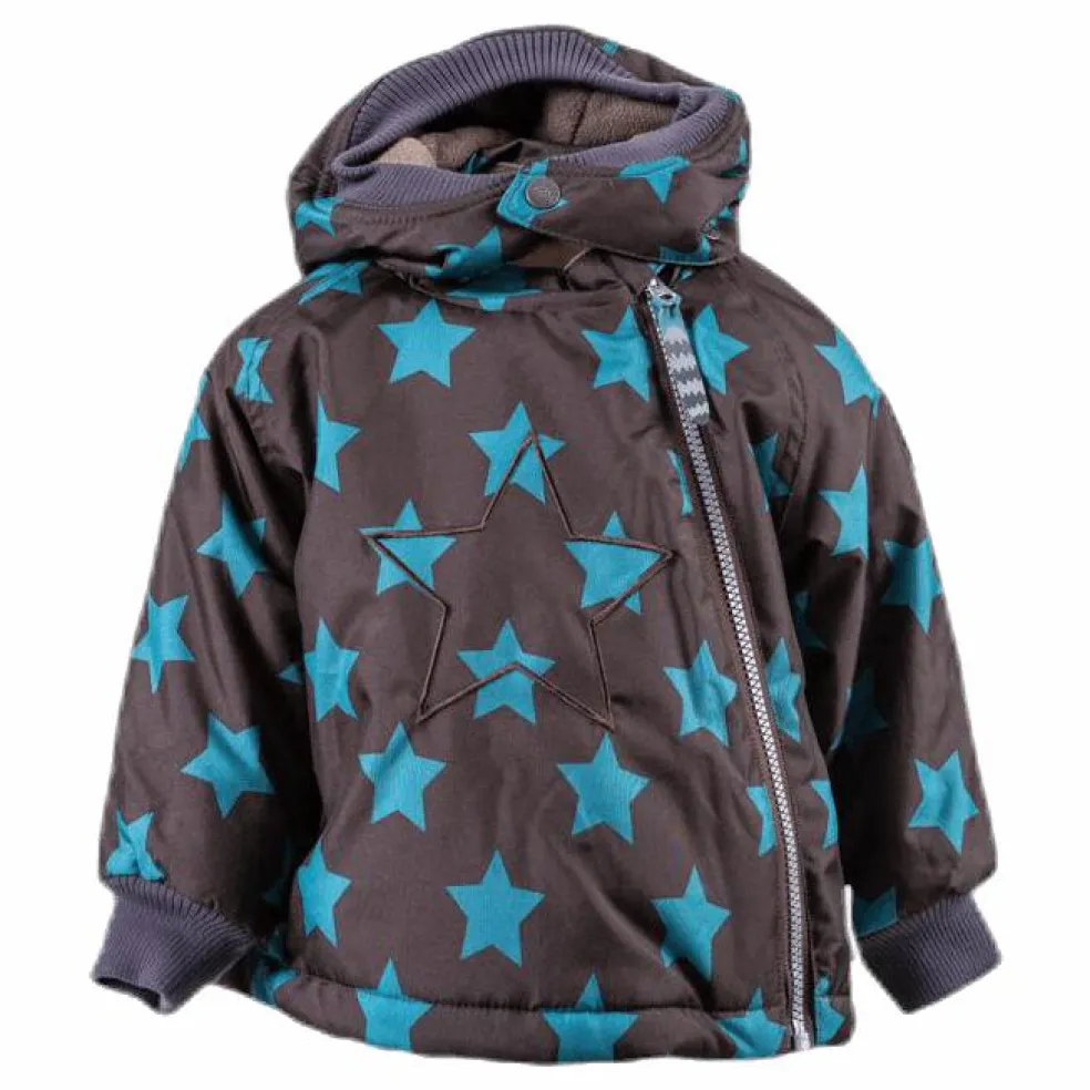Jacka fodrad med mjuk fleece och THERMOLITE. Stjärnmönster. Avtagbar huva med tryckknappar, assymmetriskt blixtlås och broderad stjärna fram. Justerbar resår nedtill. Jackan andas och vattentätheten är 9000 mm (WP9000).