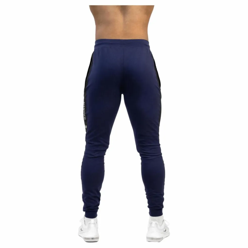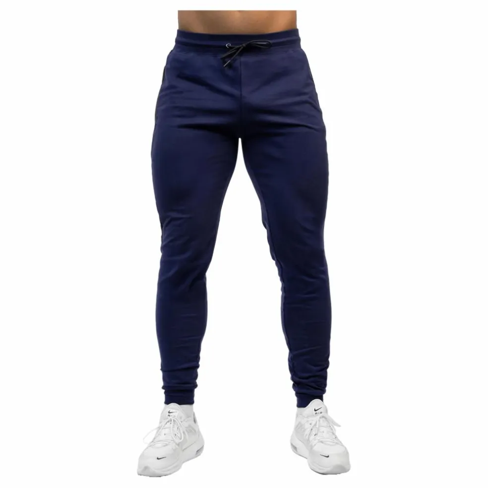 Dessa snygga marinblå joggingbyxor är idealiska för både gymmet och vardagsbruk. Med dragkedjeförsedda fickor är de extremt stretchiga och mjuka, och erbjuder exceptionell komfort och en atletisk passform. Storleksmässiga bör de tvättas i 40 grader. Torktumling kan orsaka mer krympning än lufttorkning. Undvik sköljmedel för att bevara elasticiteten och stretchen.