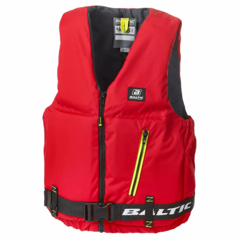 Stram och funktionell design med delade flytkroppar som ger följsamhet och hög komfort. Praktisk blixtlåsförsedd ficka, D-ring för nödstoppskontakt, nedre knytband och resår i sidorna.