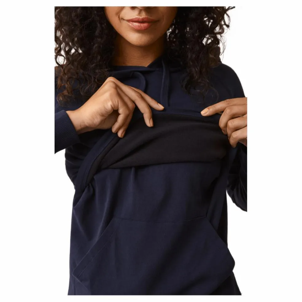 Huvtröja som fungerar både under graviditet och amning, den har gott om plats för en växande mage och är försedd med amningsomlott. Tröjan är försedd med en känguruficka att vila händerna i. Bystpartiet är fleecefodrat för att du ska hålla dig varm över bysten. Material: 95% ekologisk bomull och 5% elastan. Fleecefoder i 100% polyester.