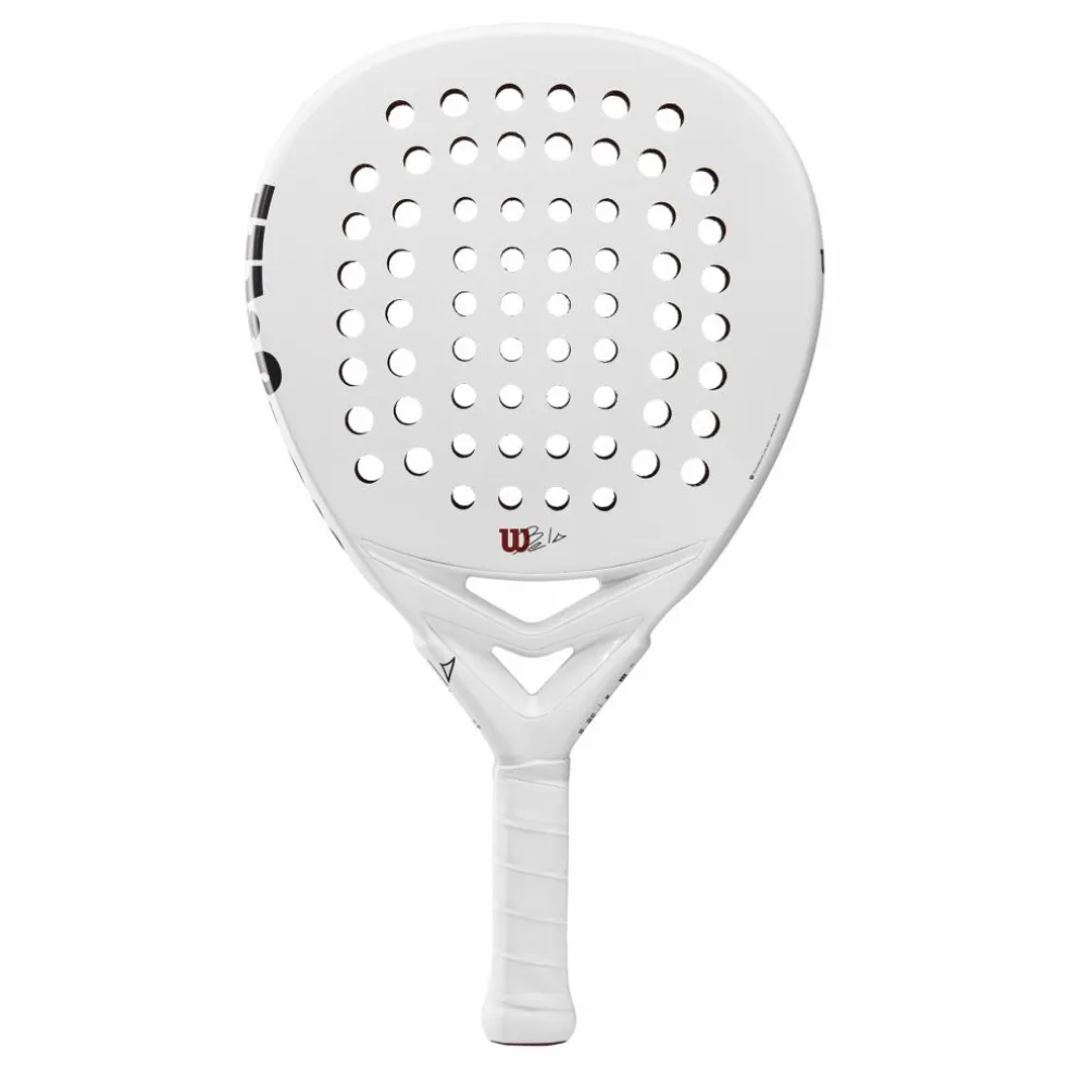 Vi introducerar Bela Lt V2, Wilsons padelracket. Dess aerodynamiska ram minskar luftmotståndet för extra kraft och spinn, vilket tar dig till din toppprestanda. Dess 5-lagers paddelkonstruktion ger optimal balans mellan kontroll, kraft och spelbarhet med varje slag. Gör dig redo att dominera banan.