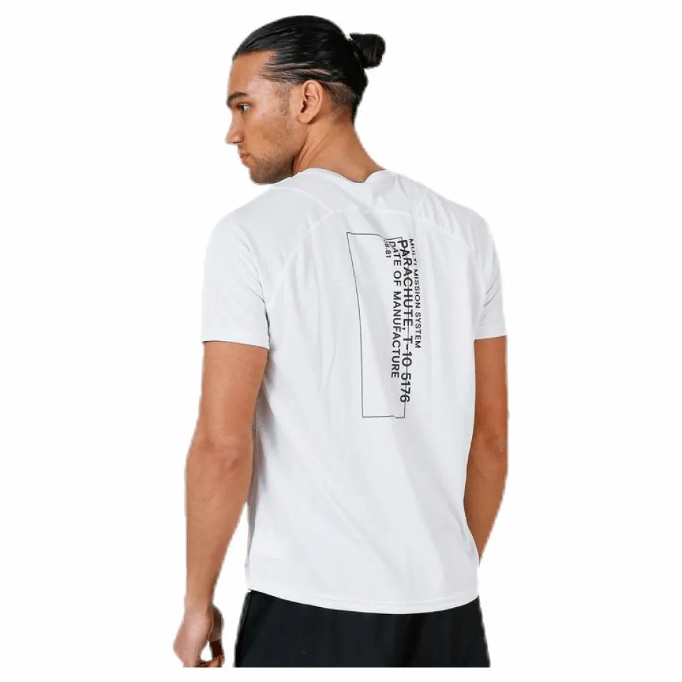 Black Tech tillverkad i ett mjukt, stretchigt material med platta sömmar. T-shirten har detaljer på ryggen som transporterar bort svett och ger extra lufttillförsel. Linjerna på t-shirten är inspirerade av fallskärmen, som är en stor del av Newlines historia.