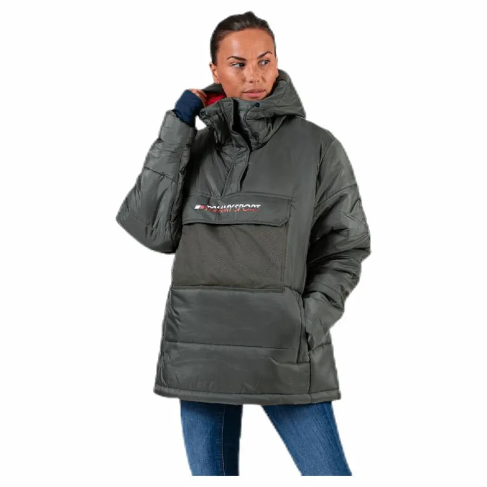 Vattenavstötlig varm jacka, dragkedjor på fickor, reglerbar huva och midja, reflekterande stjärnor.