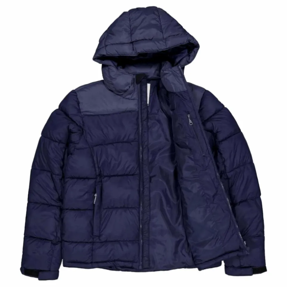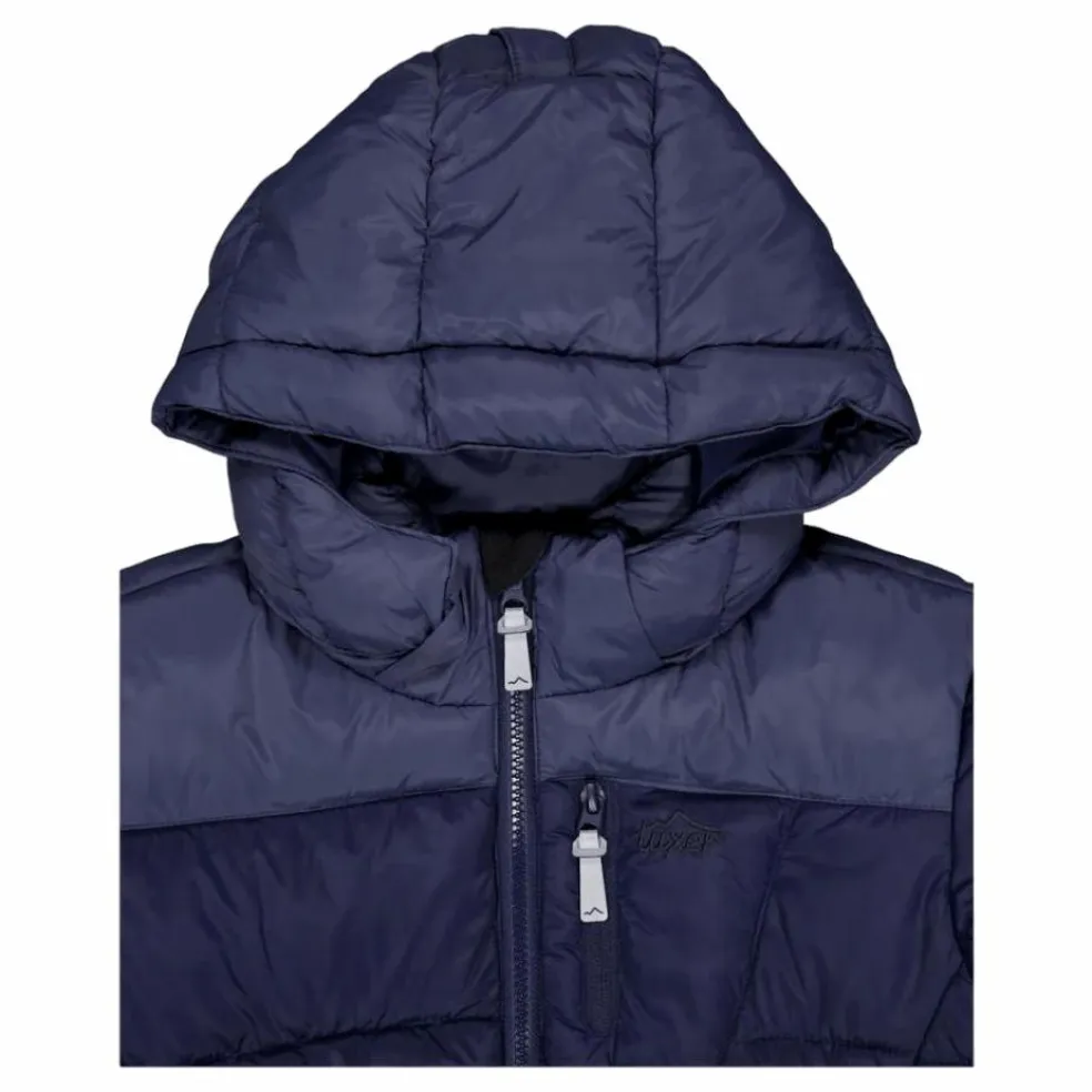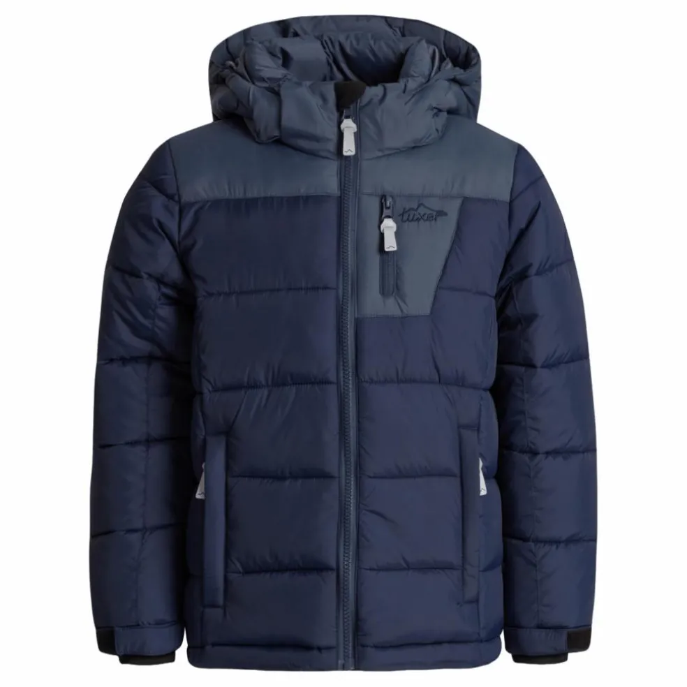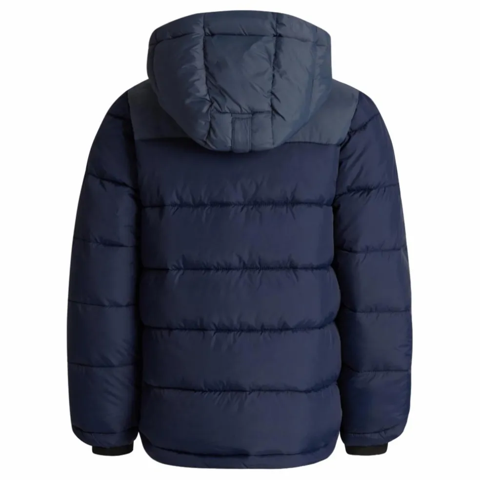 En funktionell och varm dunjacka för barn med funktioner för att vara aktiva och röra sig fritt utomhus under vintern. Det här är en jacka de kan använda hela vintern oavsett vad du håller på med! Det vattenavvisande yttertyget håller regnet ute och vi har stoppat insidan med fuskdun, vilket skapar ett varmt plagg som tål de låga temperaturerna i det nordiska klimatet. Huvan är avtagbar och har en dragsko som kan justeras efter väder och håller snö eller vind borta från huvud och nacke. En dragsko är placerad längst ner på jackan medan en innermudd med hål för tummen är placerad längst ner på ärmen. På baksidan finns en reflextejp för synlighet och säkerhet.