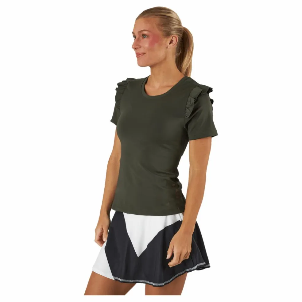 Bow19 Topp Celine Army Army Green har en unik rosettdesign på framsidan, vilket ger en touch av elegans och femininitet till den övergripande looken. Toppen är också designad med ett smickrande snitt som accentuerar dina kurvor och förstärker din siluett.