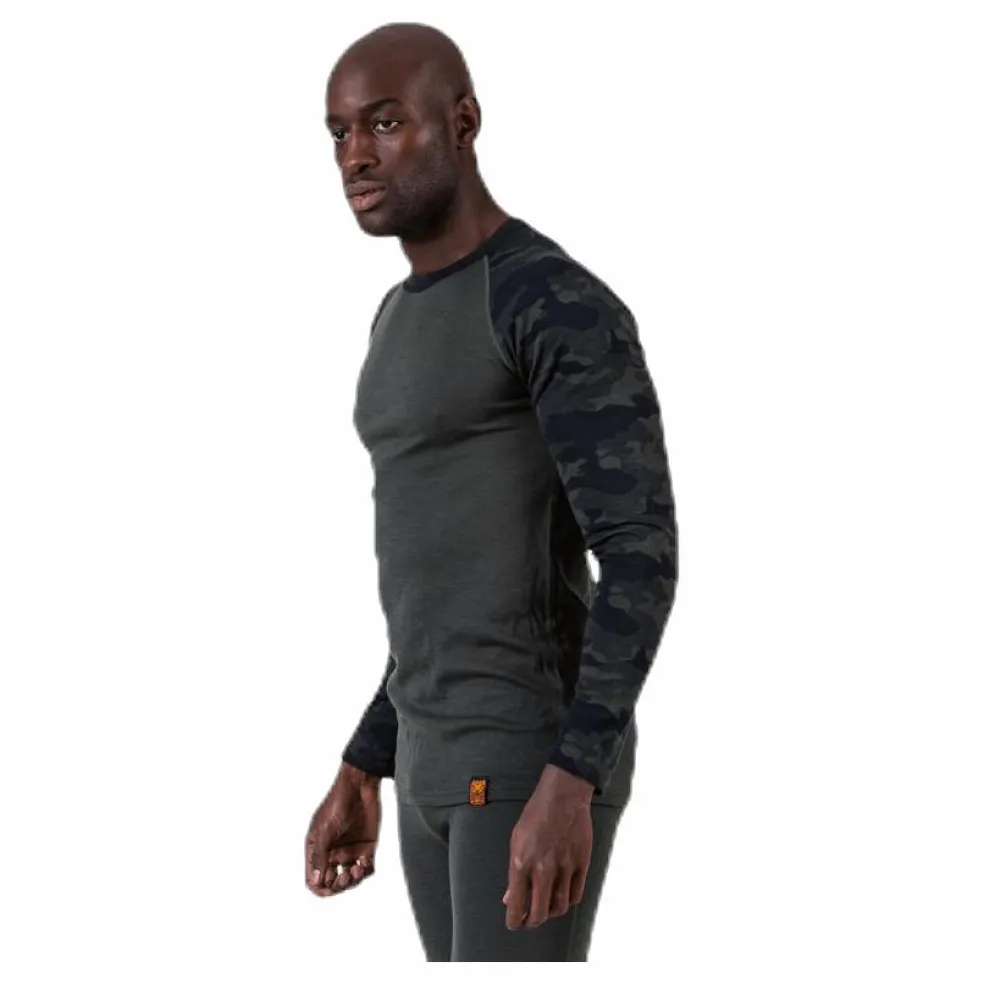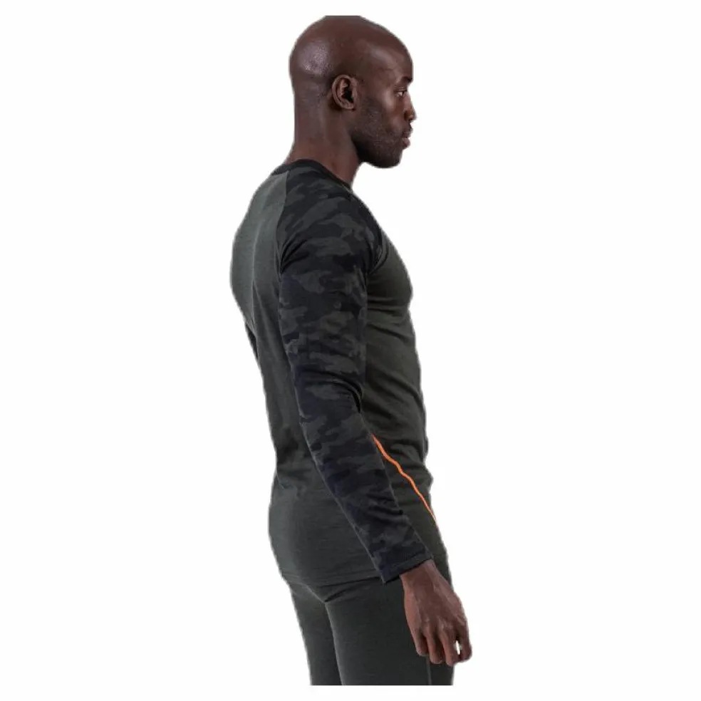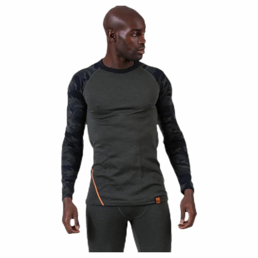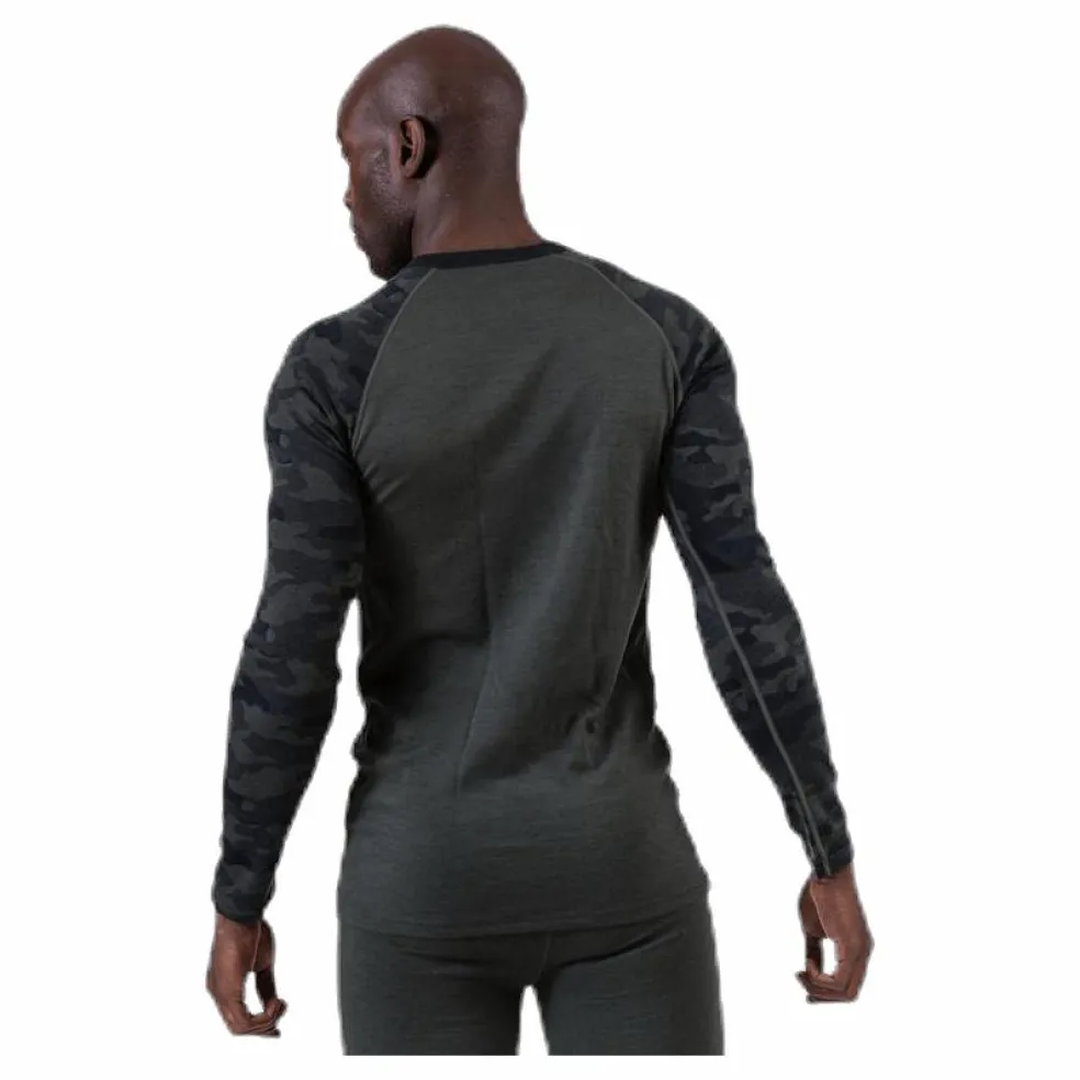 Underställströja från Bula i 2-lagers mesh. Merinoull på utsidan som bidrar med värme även när plagget är fuktigt samtidigt som den reglerar temperaturen. Polyestern på insidan bidrar med ökad stryktålighet och livslängd för plagget. Platta och elastiska sömmar. Trendigt camouflagemönster på armarna.