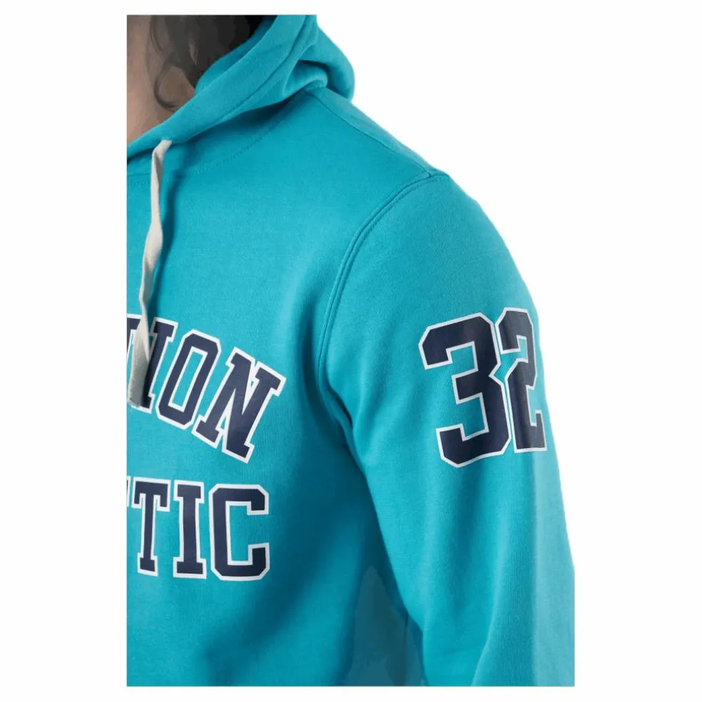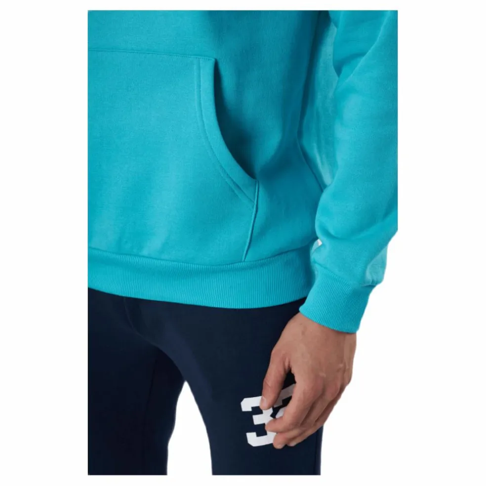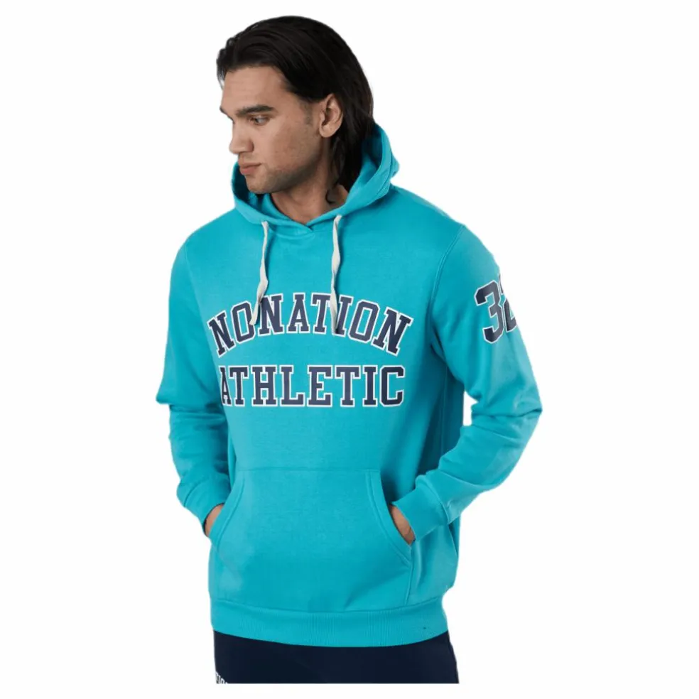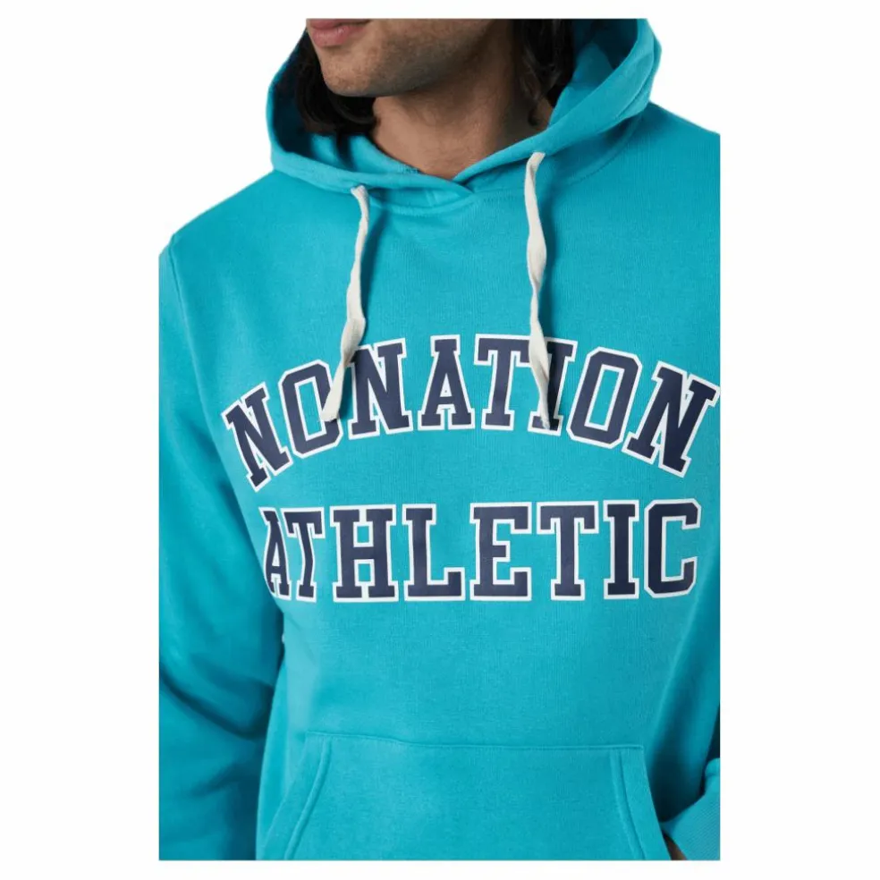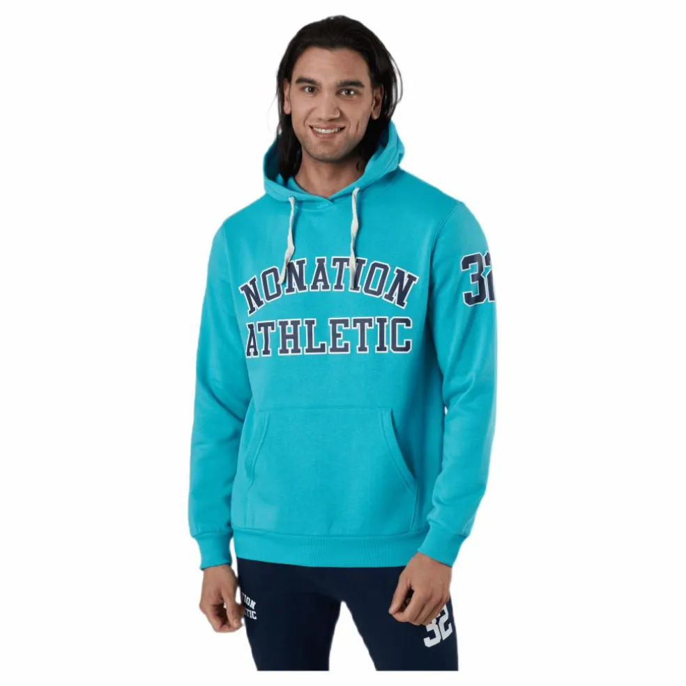 Det här är en tröja med huva. Den är gjord av tröjamaterial. Den har en dragkedja på framsidan för stängning och den har traditionella fickor på framsidan. Denna bit finns i blått och är gjord av Nonation.