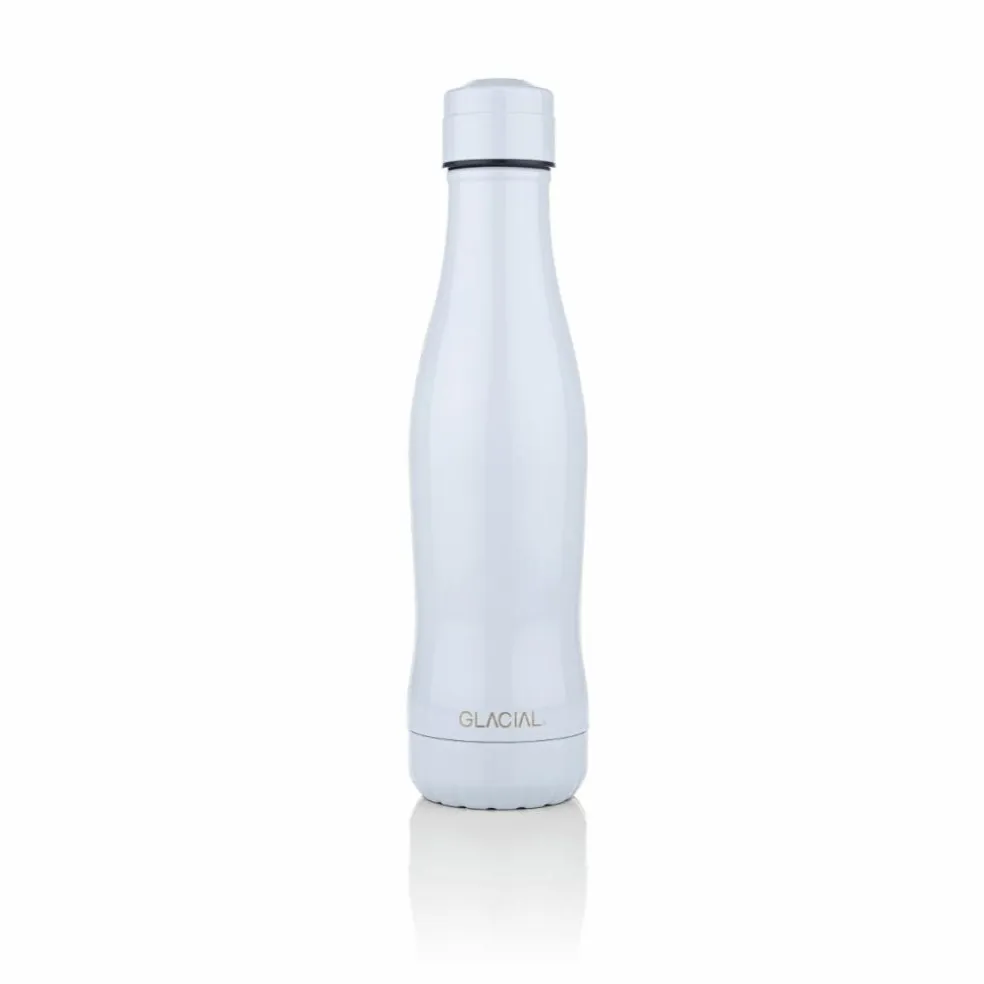 GLACIAL vattenflaska är tillverkad av rostfritt stål och kan användas till både kalla och varma drycker. Flaskan finns i olika färger och utföranden och är miljövänlig, robust och ett utmärkt alternativ till plastflaskor.
