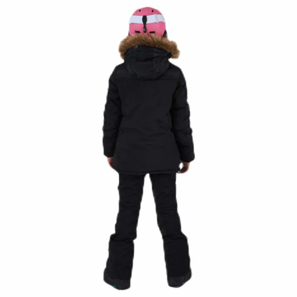 Snygg juniorskidjacka i tightare modell från VOLC. Mysig avtagbar huva med avtagbar fuskpäls. Skidkortsficka på vänster ärm och två sidofickor som förslut med dragkedja. Jackan har snö-lås och mudd i ärmöppning för ett ännu bättre skydd mot snö och slask. Förstärkta armbågar och bröstparti. Fri från flourcarbon och mjukgjord PVC. Vattenpelare 5000 membran, andningsförmåga 3000g/m2/24h. Material yttertyg: 100% polyester, material fyllning: 100% polyester. Skötselråd: Tvätta bara om det är nödvändigt. Ofta räcker det att punktvätta fläckar för hand, så håller plagget längre.