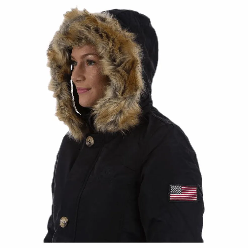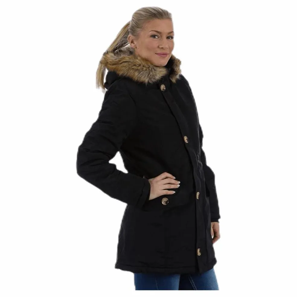 Snygg dam parkas i skönt material. Bra passfrom och snygga detaljer. 100% polyester.