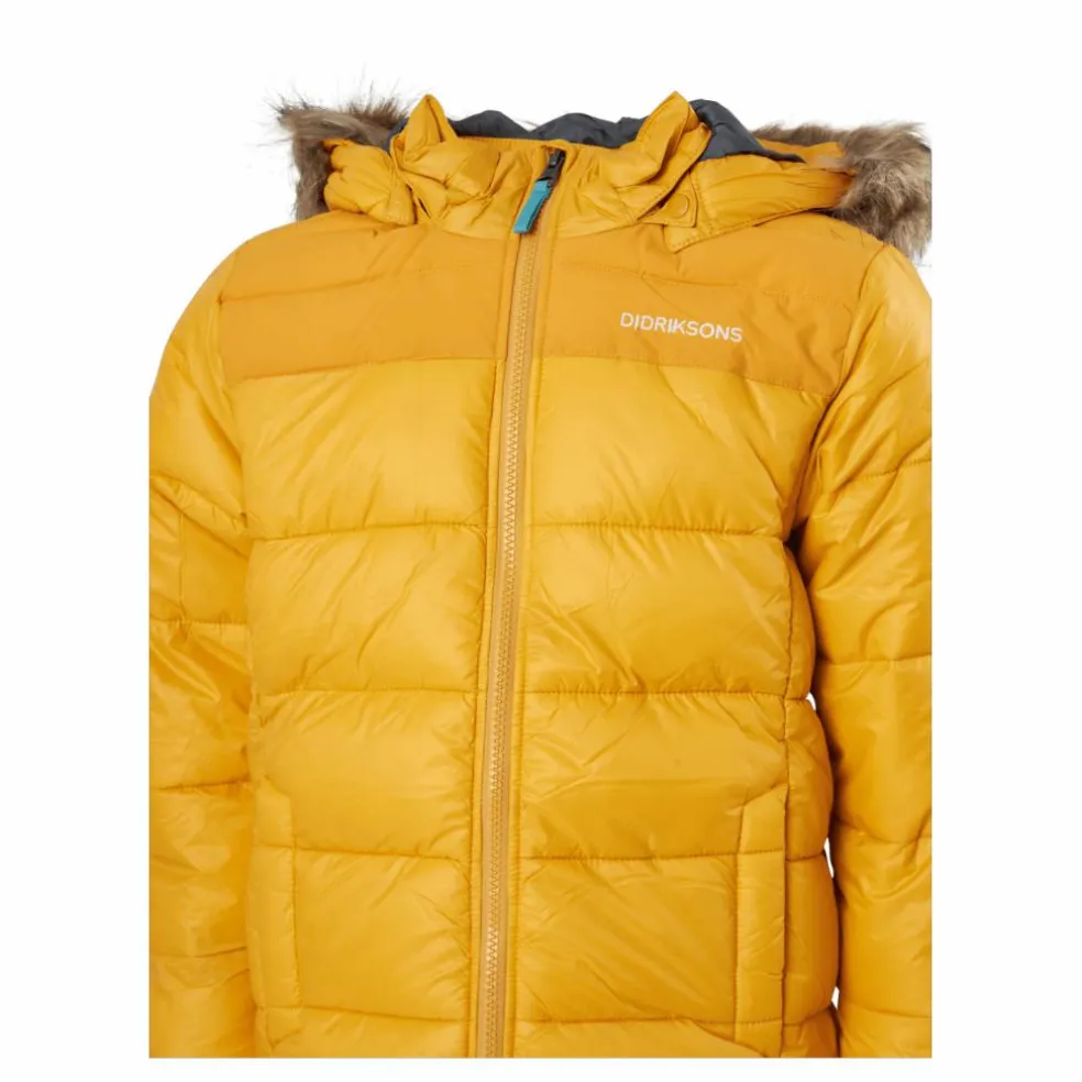 Digory är en varm, vattenavvisande och vindtät puffjacka tillverkad av lättviktspolyester. Jackan känns mjuk och fluffig och har en matt yta. Jackan har en dragkedja längs hela fronten samt två fickor i sidorna med ett fleecefoder. Baktill har jackan en reflexrand. Digory har en avtagbar huva med en avtagbar syntetisk päls. Elastiska muddar vid ärmsluten. Digory är vadderad med återvunnen polyester som isolerar värme bra. Fodret är infärgat med solution dye-teknik. Denna teknik sparar vatten, energi och kemikalier vid framtagning. Vattenavvisningen är PFC-fri.