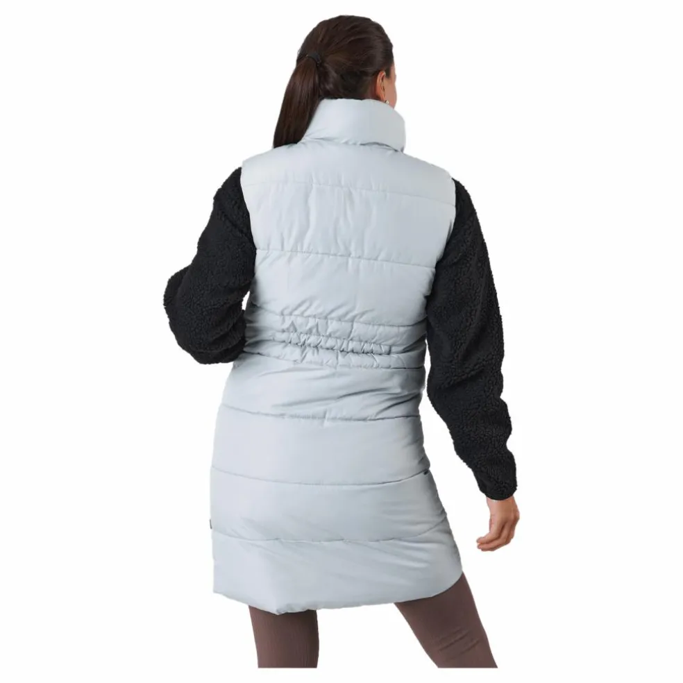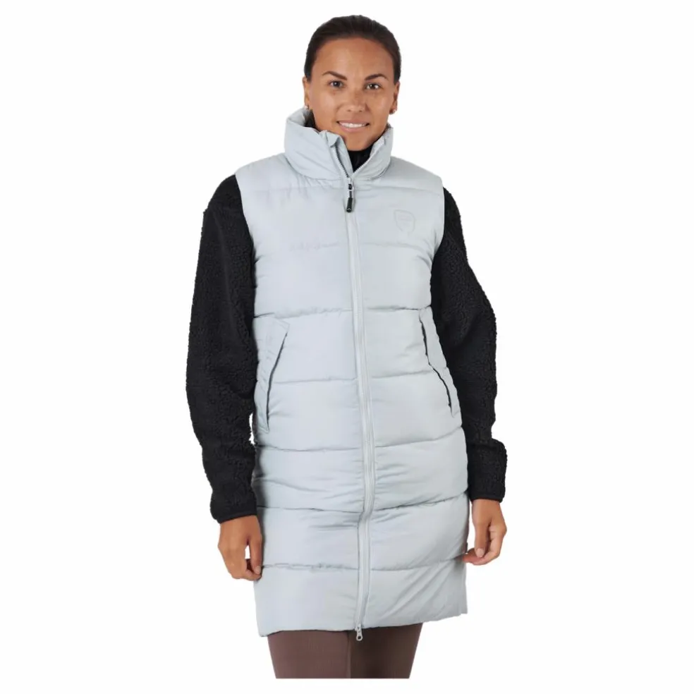 En trendig imiterad dunväst att bära över en träningsoverall eller som ett övergångsplagg på hösten. Elmira är en mycket populär väst tack vare sin stilrena klassiska design och värmande egenskaper. Den ingår även i vår Green Choice-kategori då västen är gjord av återvunnen polyester och imiterad dunfyllning. Du behöver inte frysa i nacken med denna väst då den har en mjuk och hög krage som går att stänga hela vägen upp. Elmira är även utrustad med två framfickor och en innerficka. Dragkedjan har ett skyddande lager för att förhindra att vatten tränger igenom.
