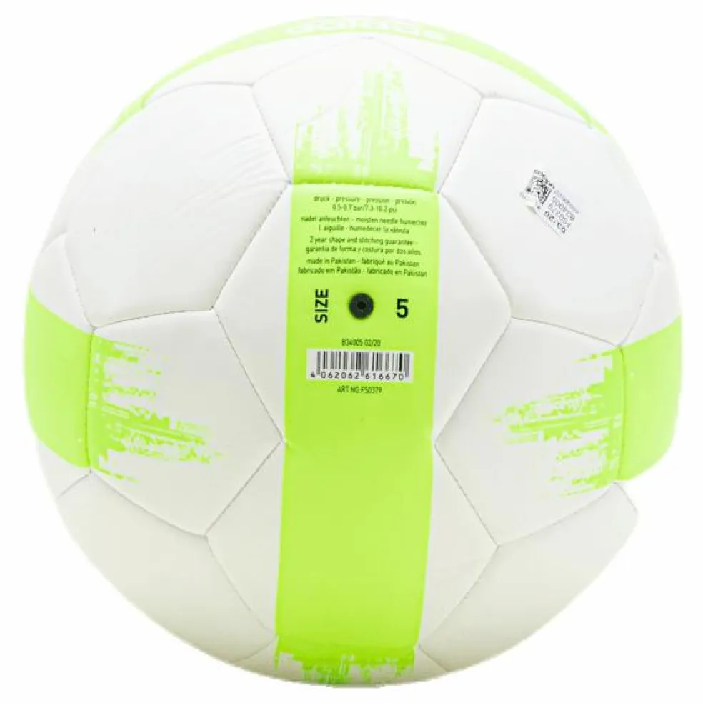 Visa upp dina fotbollsränder. Denna mångsidiga klubboll från adidas är gjord för träning och spontanspel. Du tappar den inte ur sikte tack vare den färgstarka grafiken som bildar ett mönster när den snurrar. Det slitstarka TPU-höljet, den maskinsydda konstruktionen och butylblåsan gör att den klarar de allra intensivaste omgångarna. Maskinsydd. Behöver pumpas. . Hölje i 100 % TPU. . Fotboll för träningspass. Butylblåsan håller effektivt kvar luften.