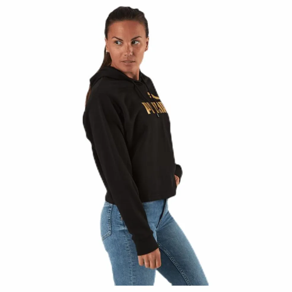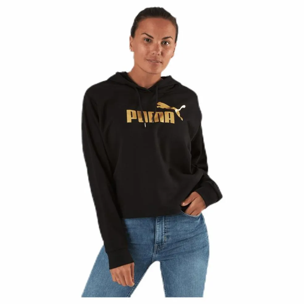 Cropped Hoodie med PUMA tryck i metallic. Den innehåller bomull från Better Cotton Initiative. Huva med justerbar snörning för bästa passform. Normal passform.