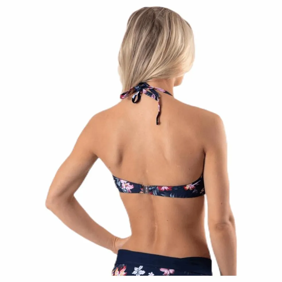 Bandeaubikini med fyllda kupor, fin omlottdrapering fram och avtagbara axelband för solbränna utan linjer.
