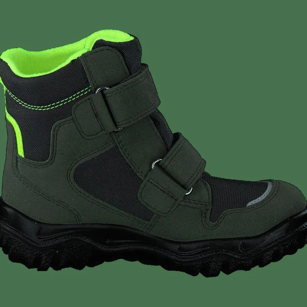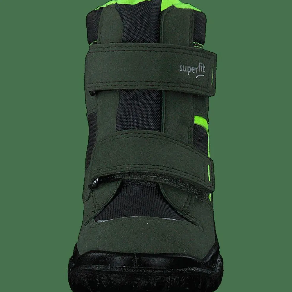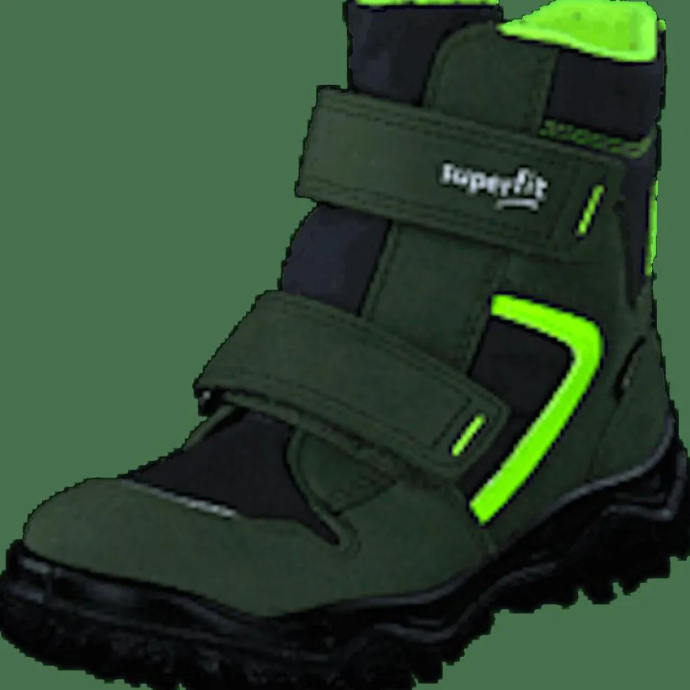 HUSKY1 is a brand of shoes for kids. The shoes are green, have velcro, and are for sporting.
