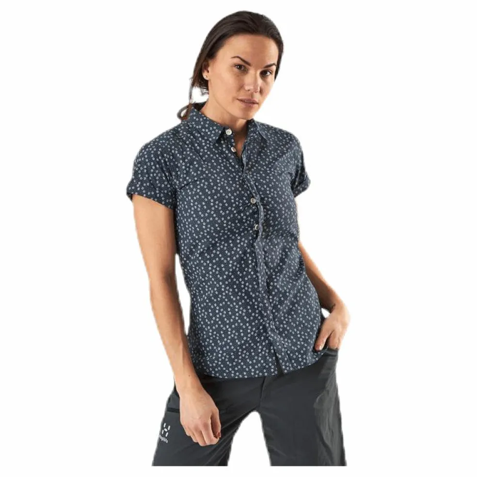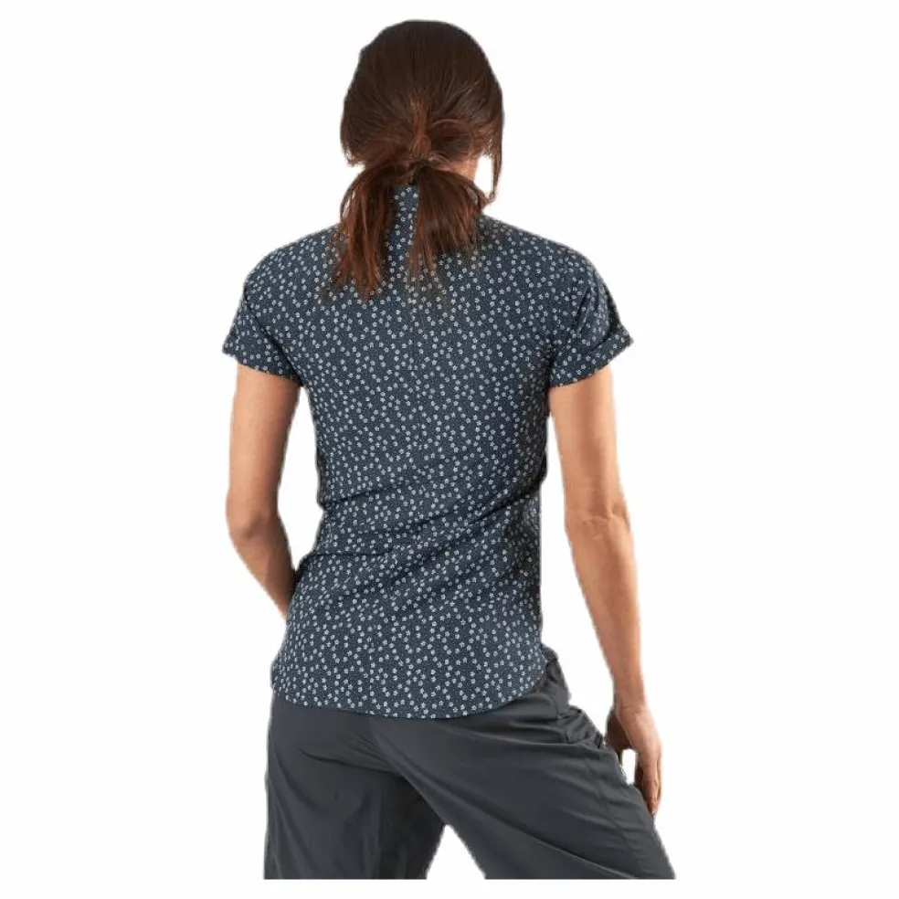 Fin skjorta i skönt, fukttransporterande material. Nätt passform och delvis gömda knappar i återvunnen bomull ger en fin siluett. Skönt, fukttransporterande material med fin look. Nätt krage och delvis gömda knappar.Knappar av återvunnen bomull.Flyttade axelsömmar för att undvika skav.UPF 40.59 % återvunnen polyester, 41 % polyamid, bomullsliknande och snabbtorkande slätvävt tyg med blomstertryck eller ränder i två nyanser, 90 g/m²