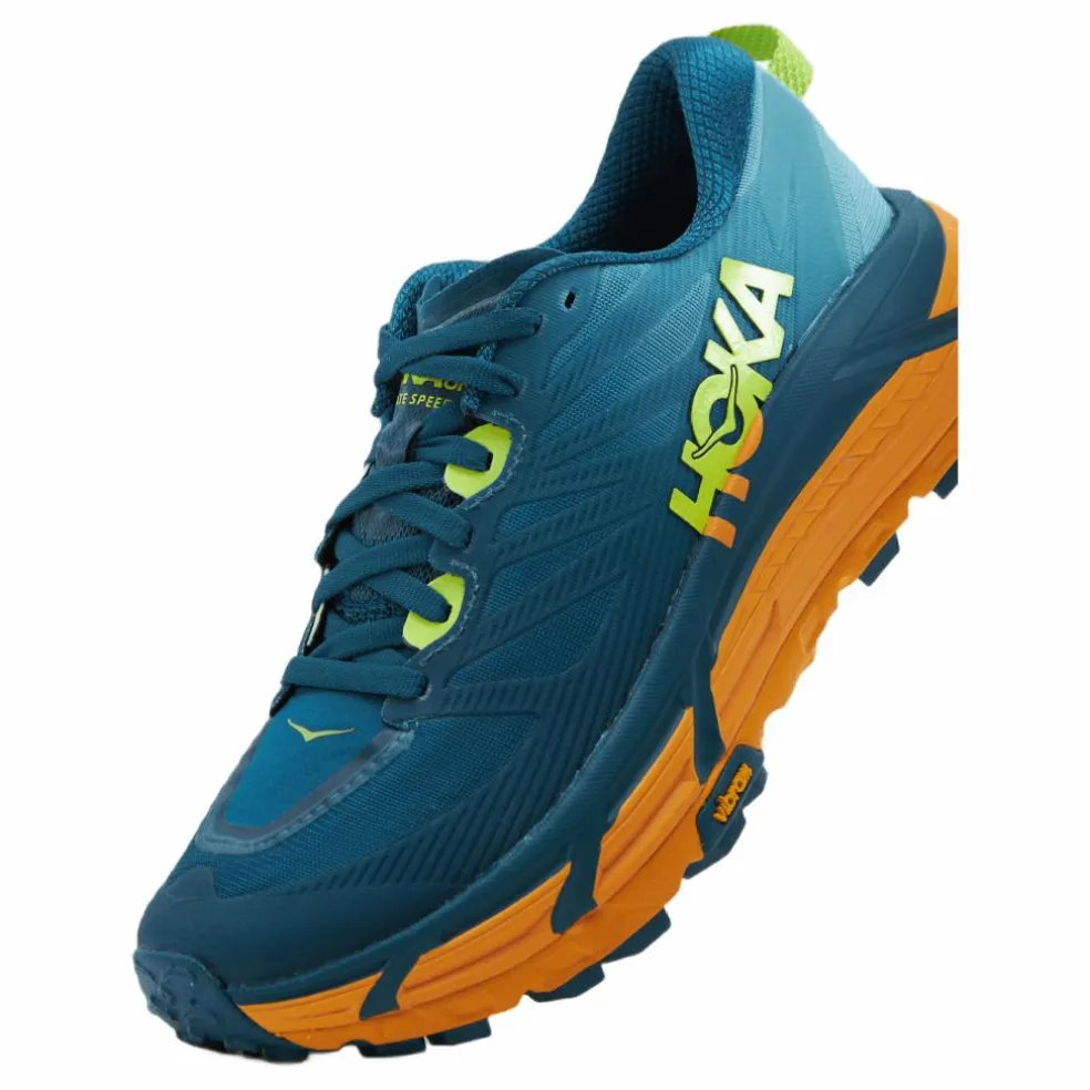 Mafate är en robust trail-utmanare som presterar sakkunnigt i teknisk terräng och återvänder för sin tredje iteration, med en hållbar nätöverdel gjord av återvunnen polyester. Mafate Speed 3 är konstruerad med KPU-gjutna överlägg för skyddande stöd och är jordad i samma aggressiva yttersula med dubbla densitet som består av EVA och gummerad EVA med Vibram® 5 mm klackar. Designad med en dynamisk, textil tunga för stretchig, fotnära komfort, denna trail beast är utrustad med en andningsbar, perforerad sektion på tungan och förstärkt med en mellanfotsstödkonstruktion på ögonraden för en skräddarsydd passform. När spåret blir tekniskt kliver Mafate Speed 3 upp för att hantera vad naturen lägger i din väg.ÖVRE
